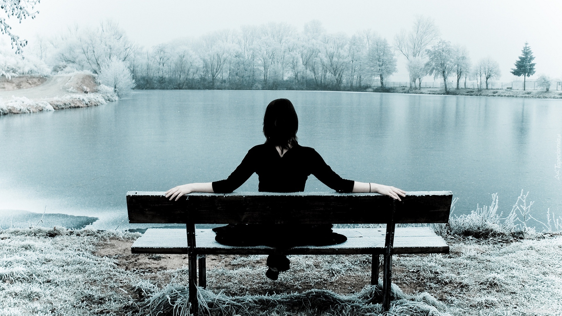 Edytor tapety: Kobieta, Ławka, Jezioro