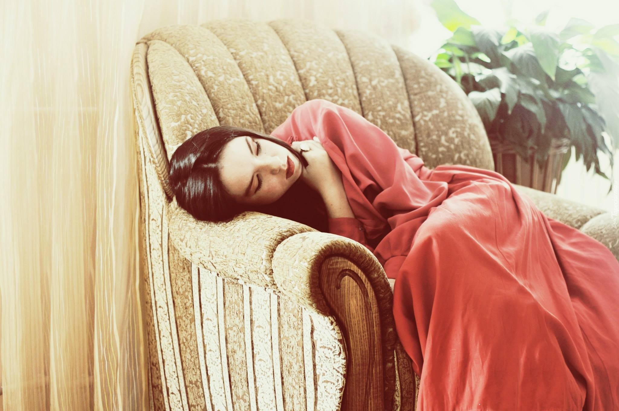 Edytor tapety: Zamyślona, Kobieta, Brunetka, Fotel