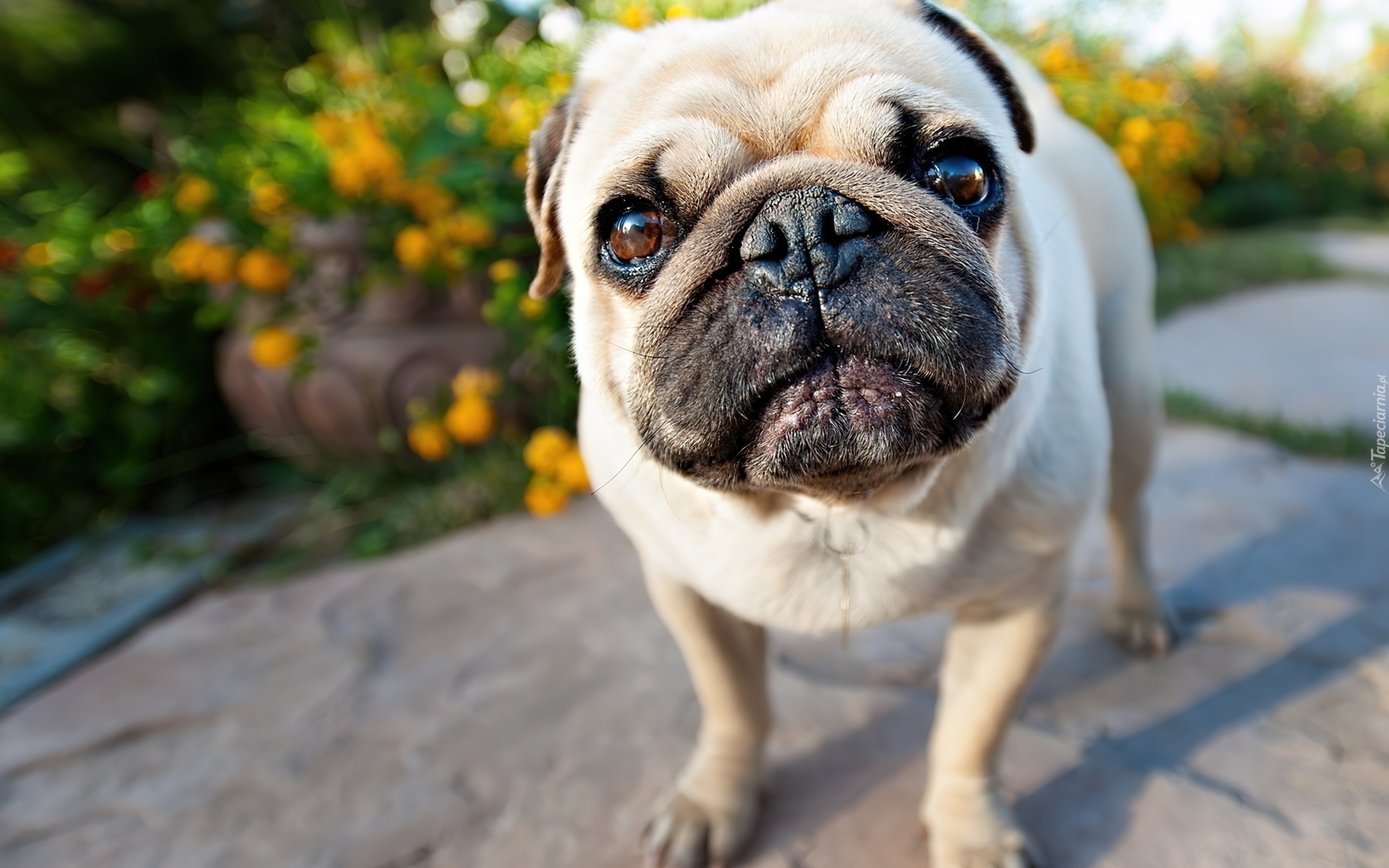 Edytor tapety: Pies, Mops, Pyszczek, Oczy