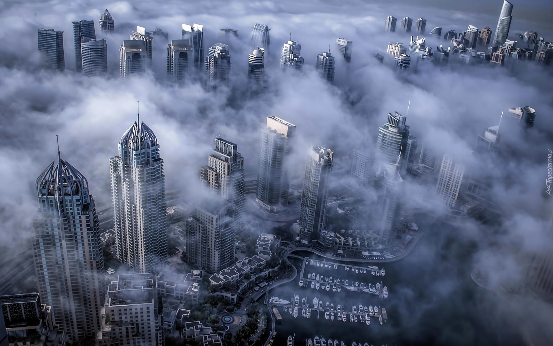 Edytor tapety: Drapacze, Chmur, Mgła, Port, Dubaj