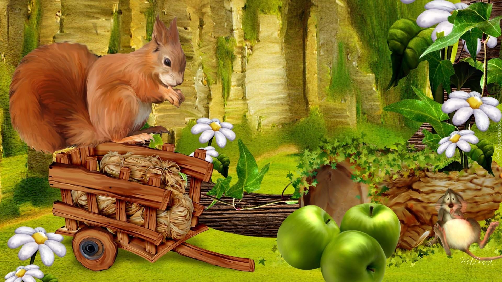 Edytor tapety: Wiewiórka, Jabłka, Las