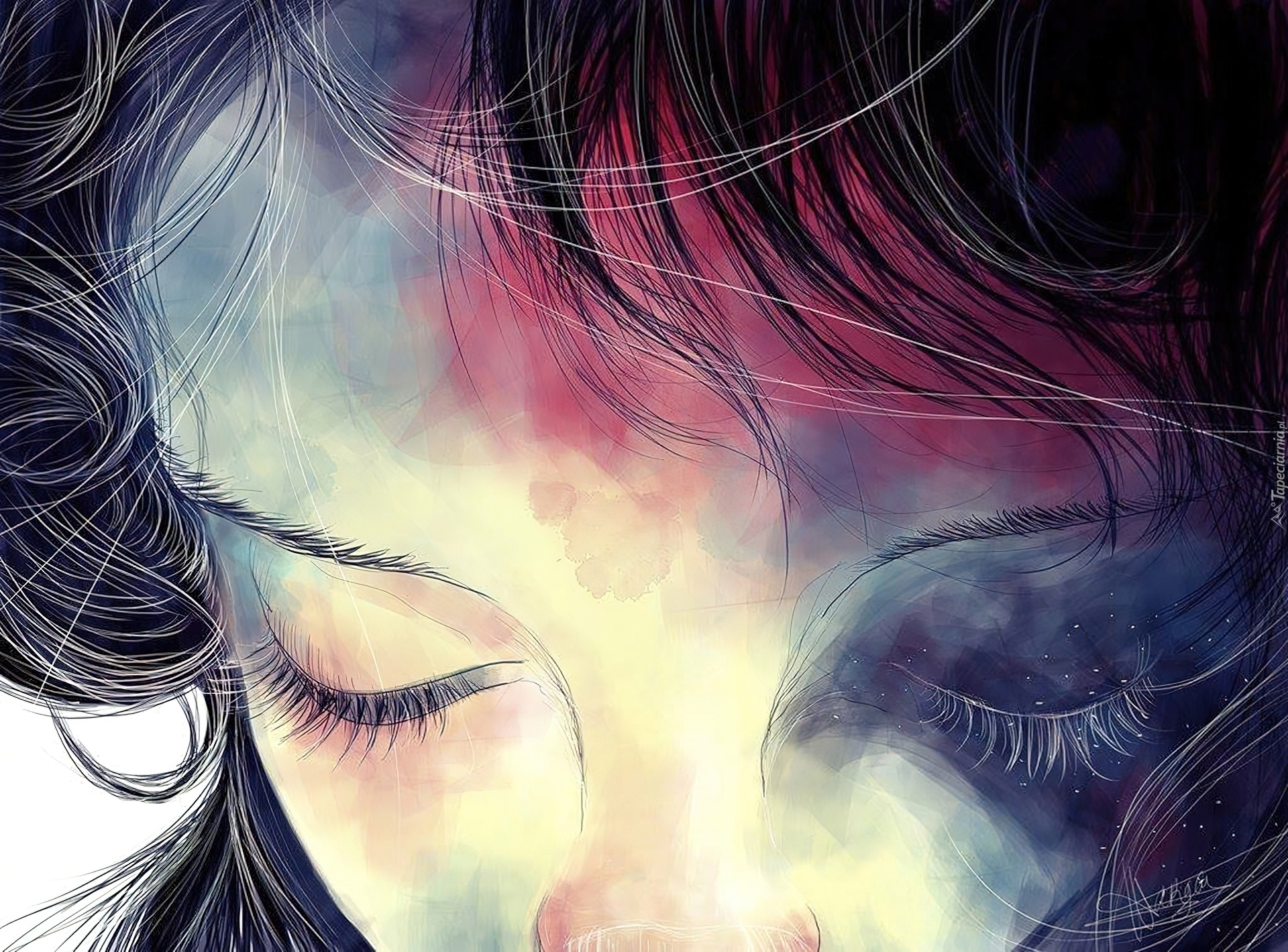 Edytor tapety: Zamyślona, Dziewczyna, Grafika