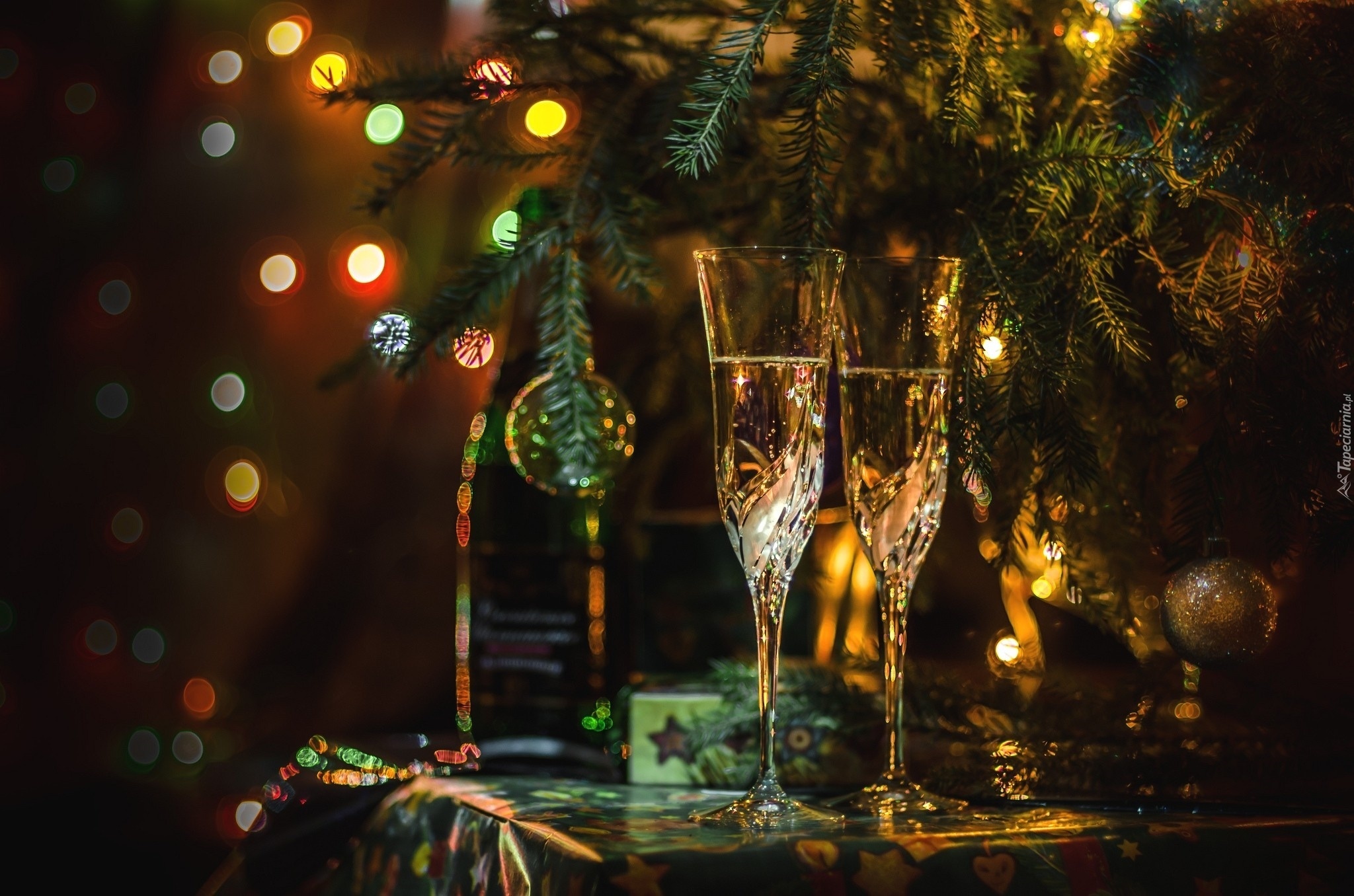 Edytor tapety: Szampan, Kieliszki, Choinka