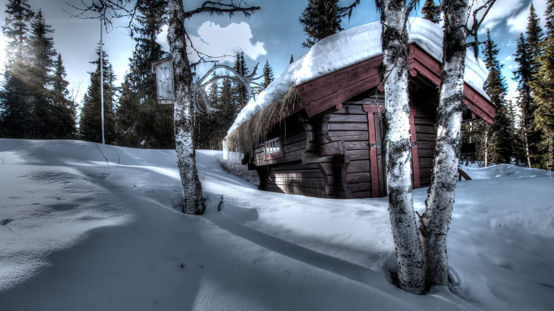 Edytor tapety: Las, Chata, Zaspy, Zima