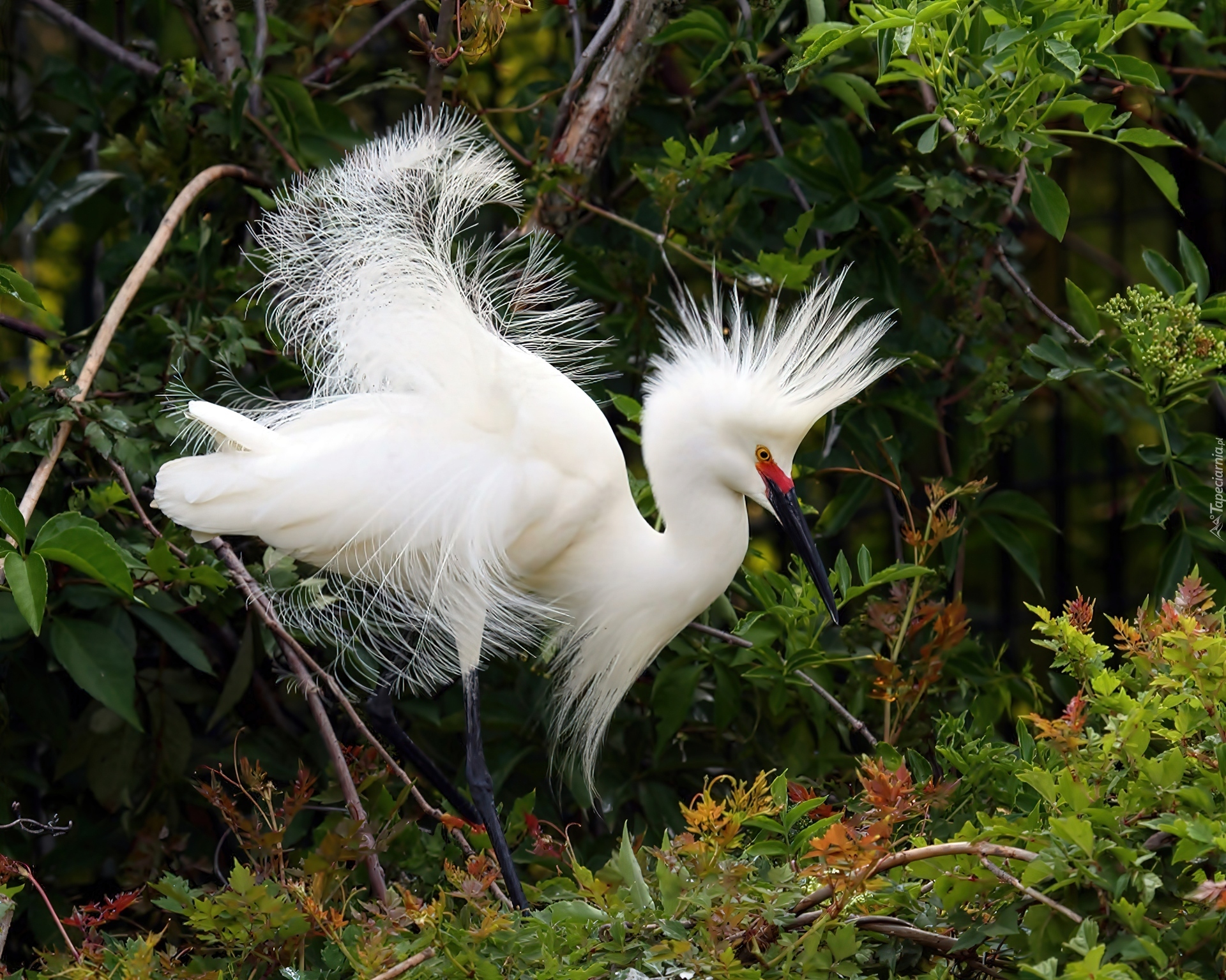 Edytor tapety: Czapla, Śnieżna, Roślinność