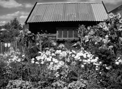 Edytor tapety: Domek, Ogródek, Kwiatowy, Słoneczniki
