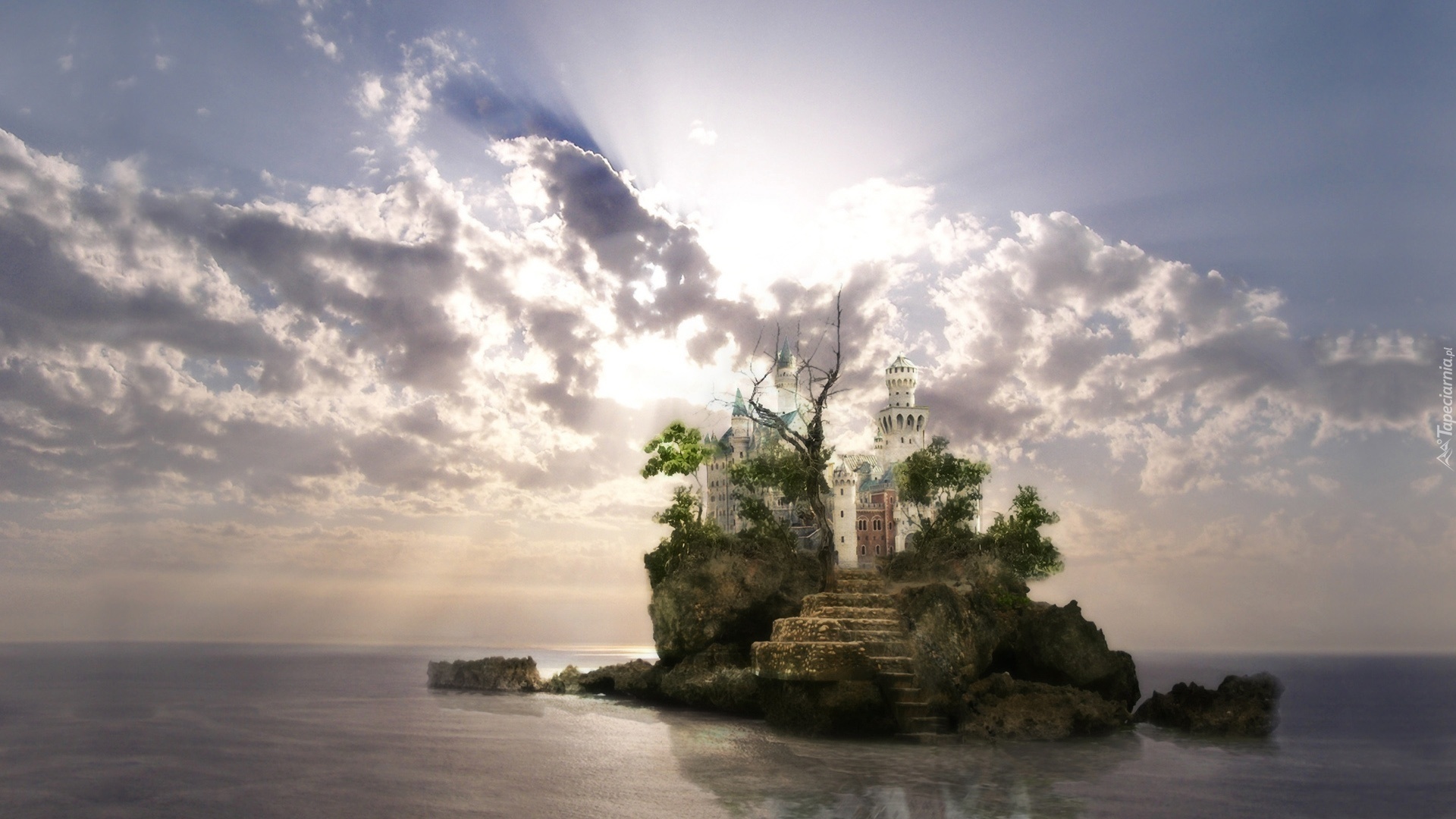 Edytor tapety: Fantasy, Zamek, Wyspa, Grafika