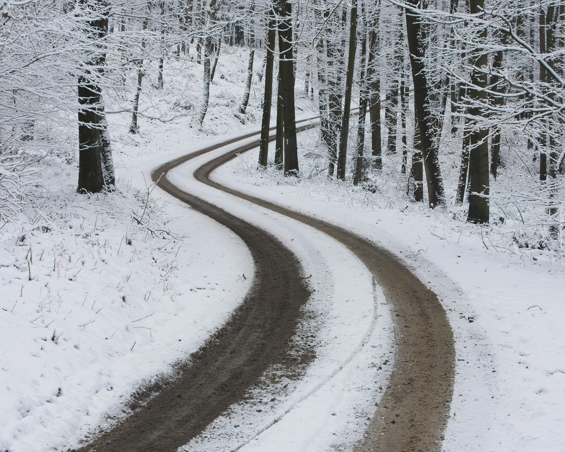 Edytor tapety: Zima, Droga, Zakręt, Las, Śnieg