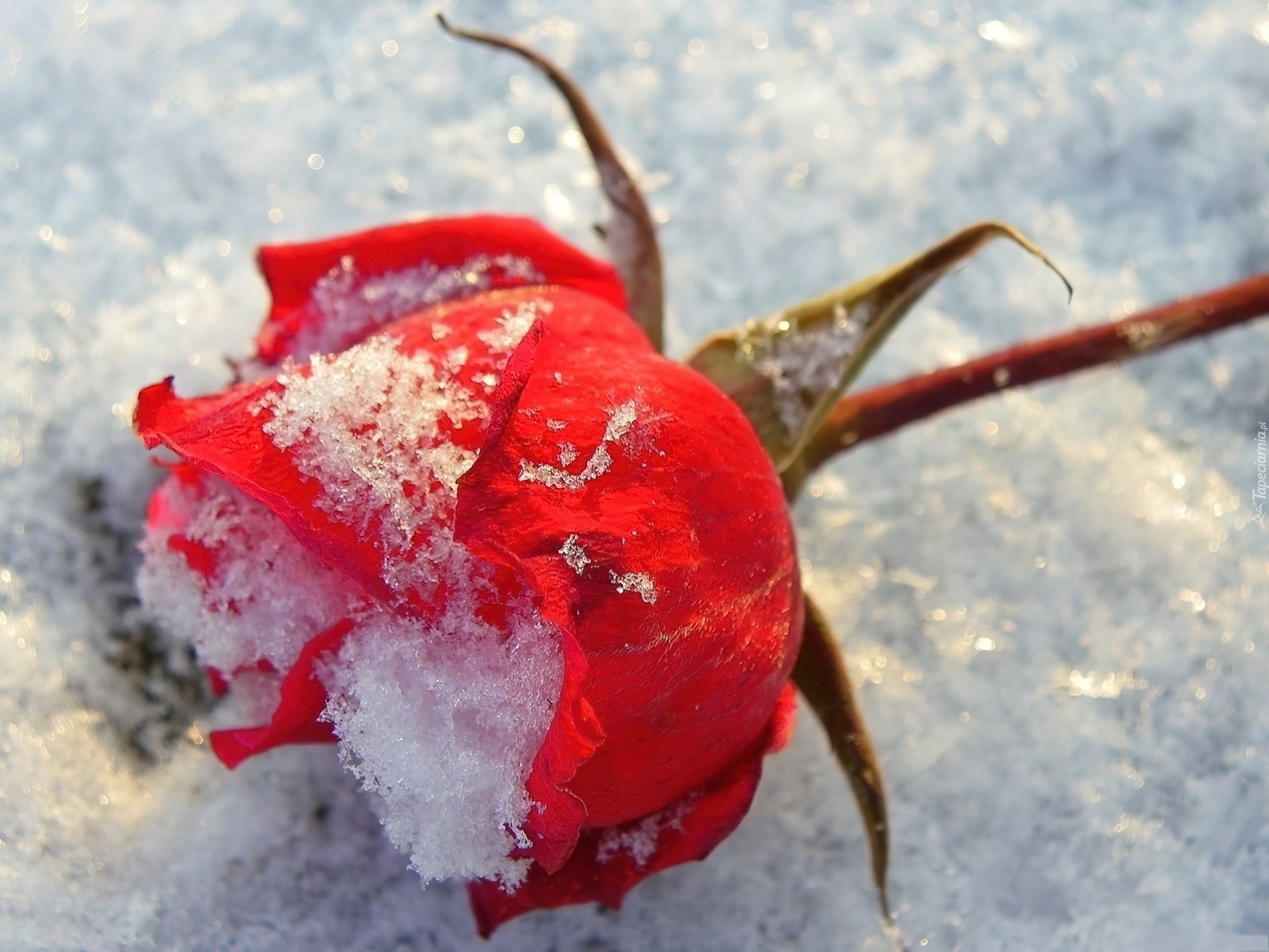 Edytor tapety: Czerwona, Róża, Śnieg,