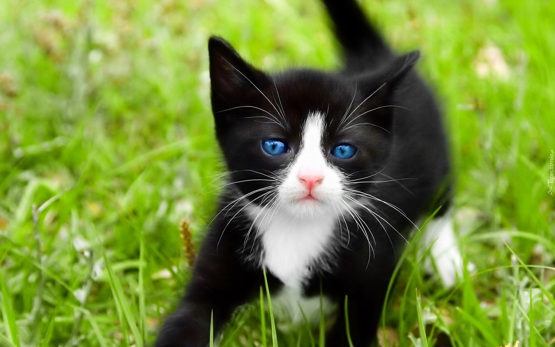 Edytor tapety: Czarno, Biały, Kotek, Łąka, Trawa