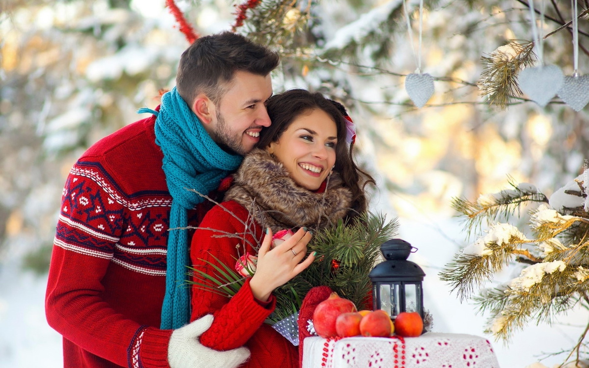 Edytor tapety: Radosna, Para, Choinka, Serduszka, Lampion