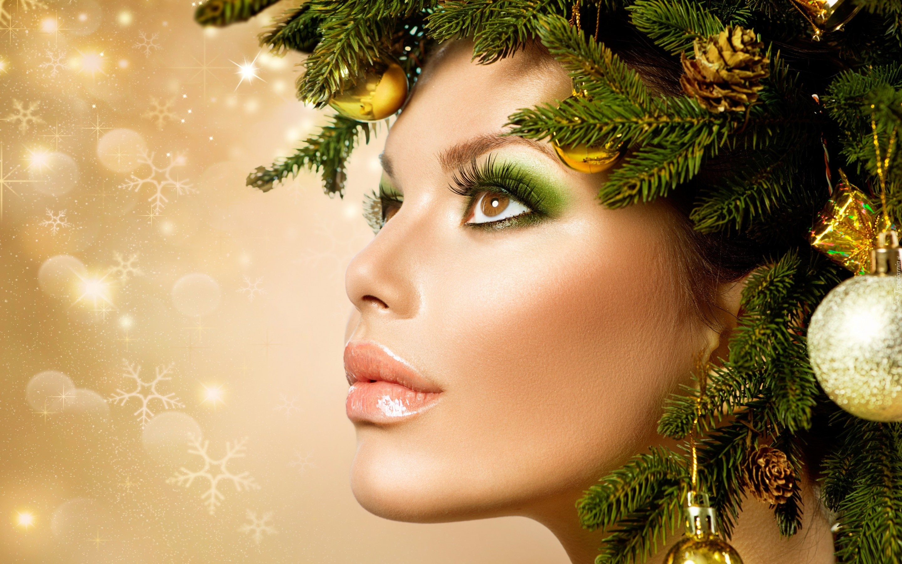 Edytor tapety: Makijaż, Stroik, Świąteczny, Kobieta