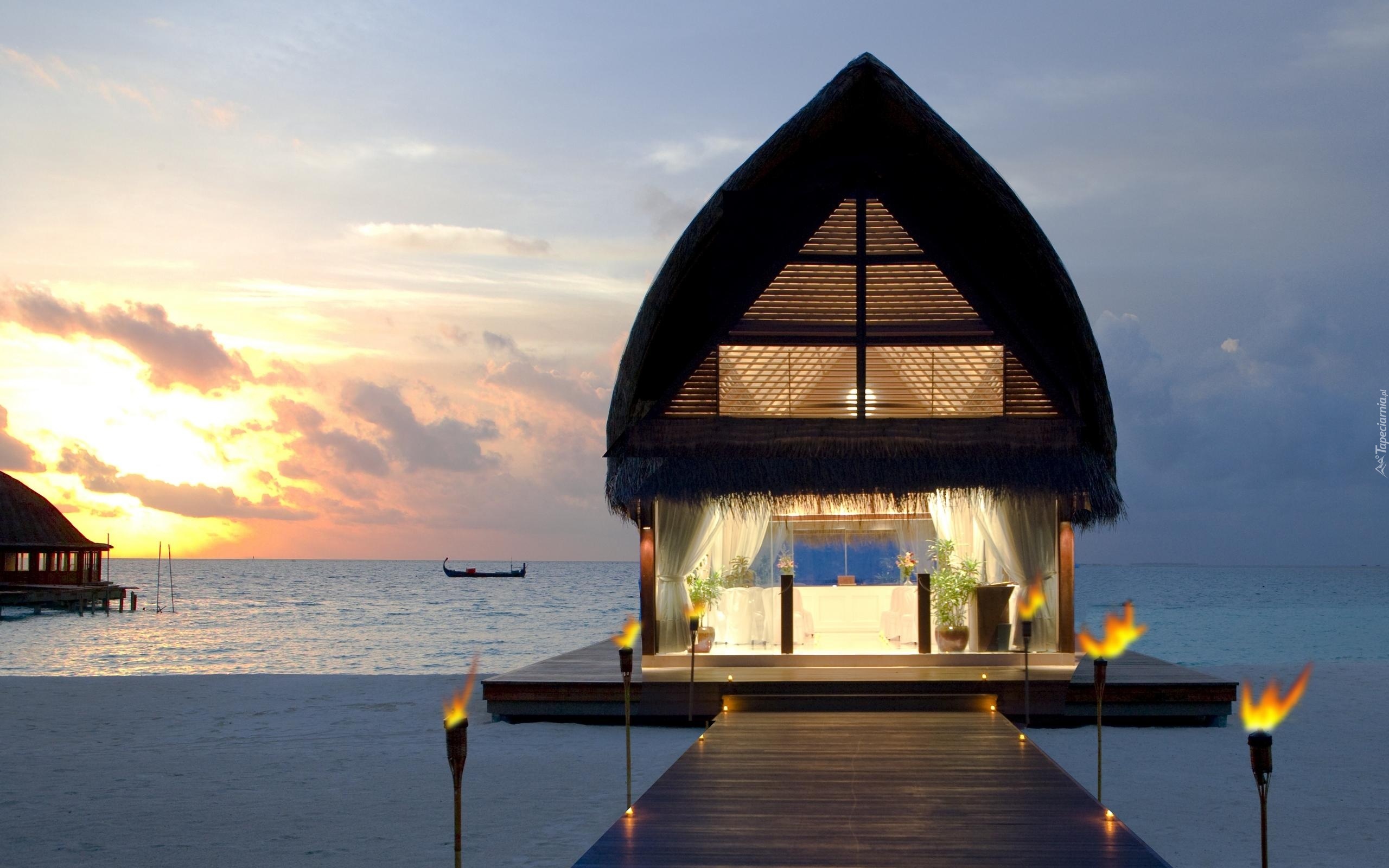 Edytor tapety: Tropiki, Morze, Plaża, Domki, Pomost