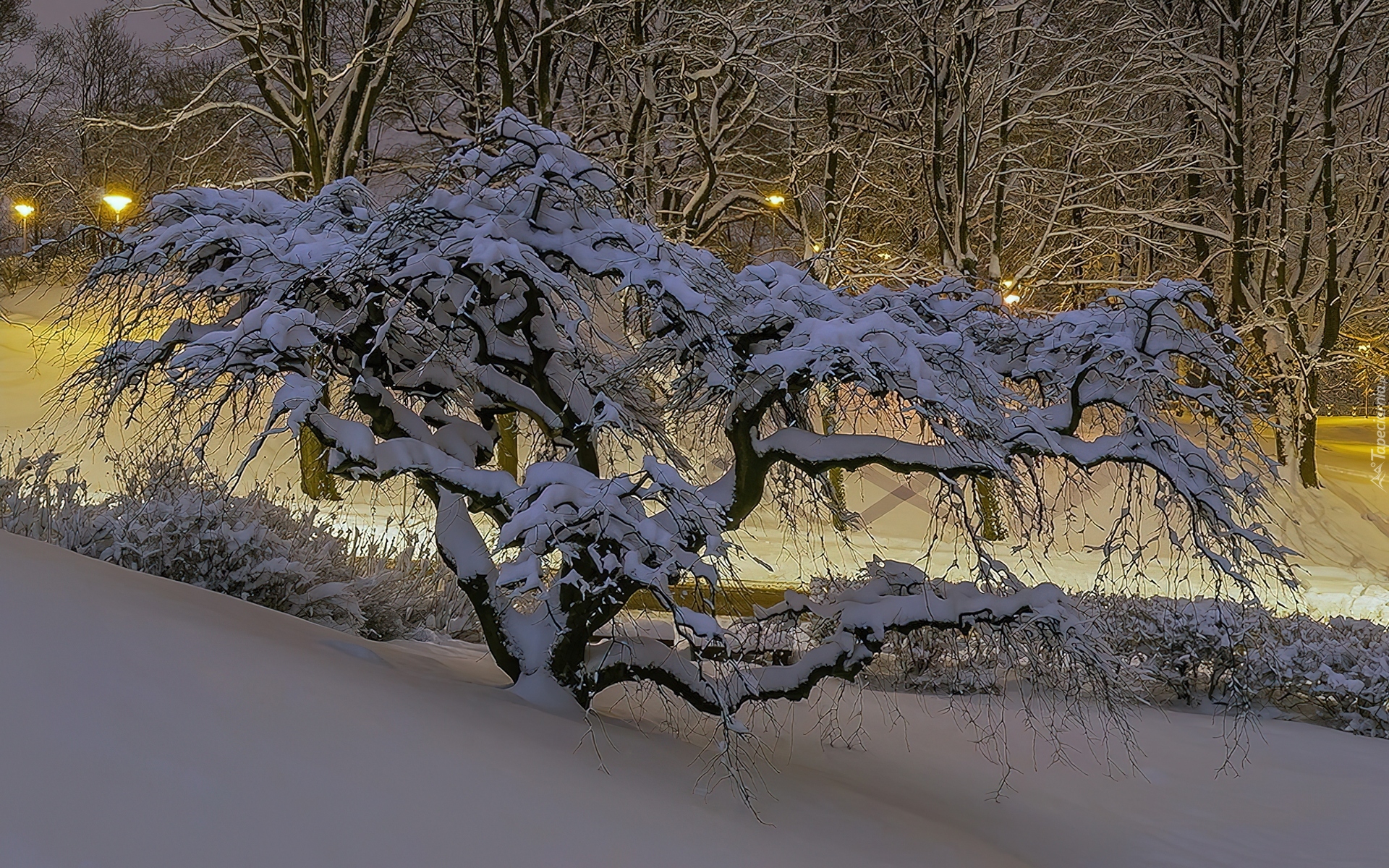 Edytor tapety: Zima, Śnieg, Niskie, Krzywe, Drzewo