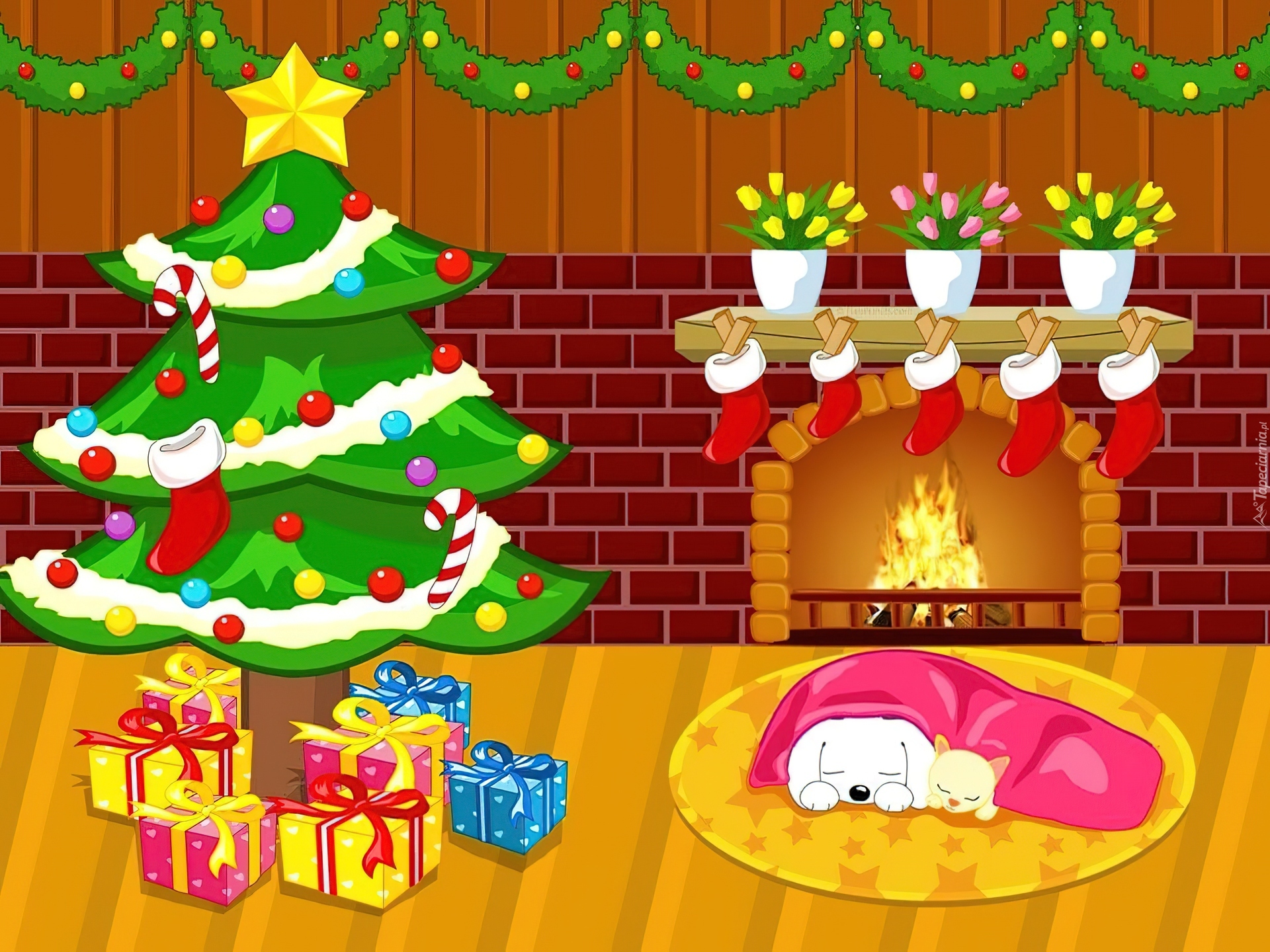 Edytor tapety: Boże Narodzenie,piesek, choinka
