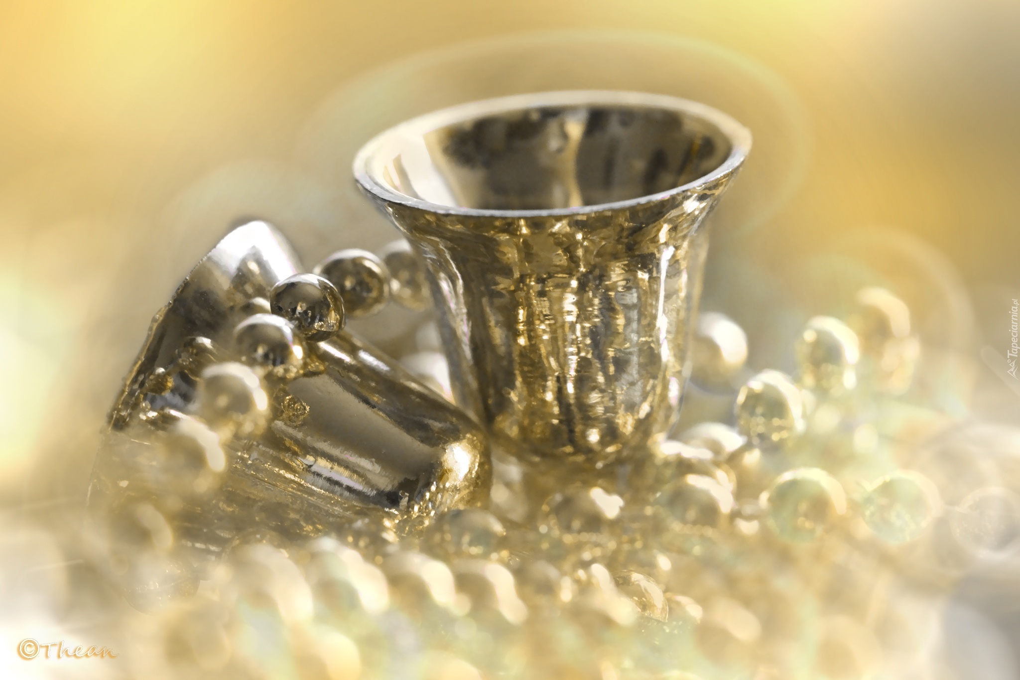 Edytor tapety: Złote, Dzwonki, Koraliki, Ozdoby, Boże Narodzenie