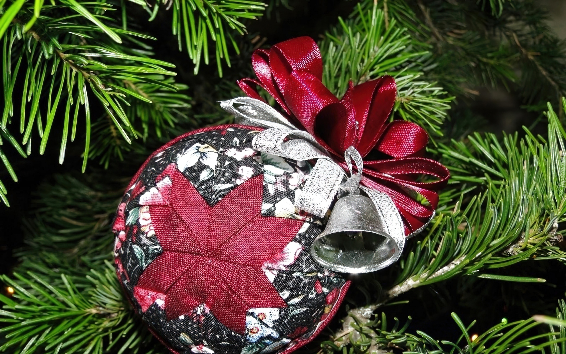 Edytor tapety: Boże, Narodzenie, Ozdoby, Bombka, Dzwoneczek, Gałązki