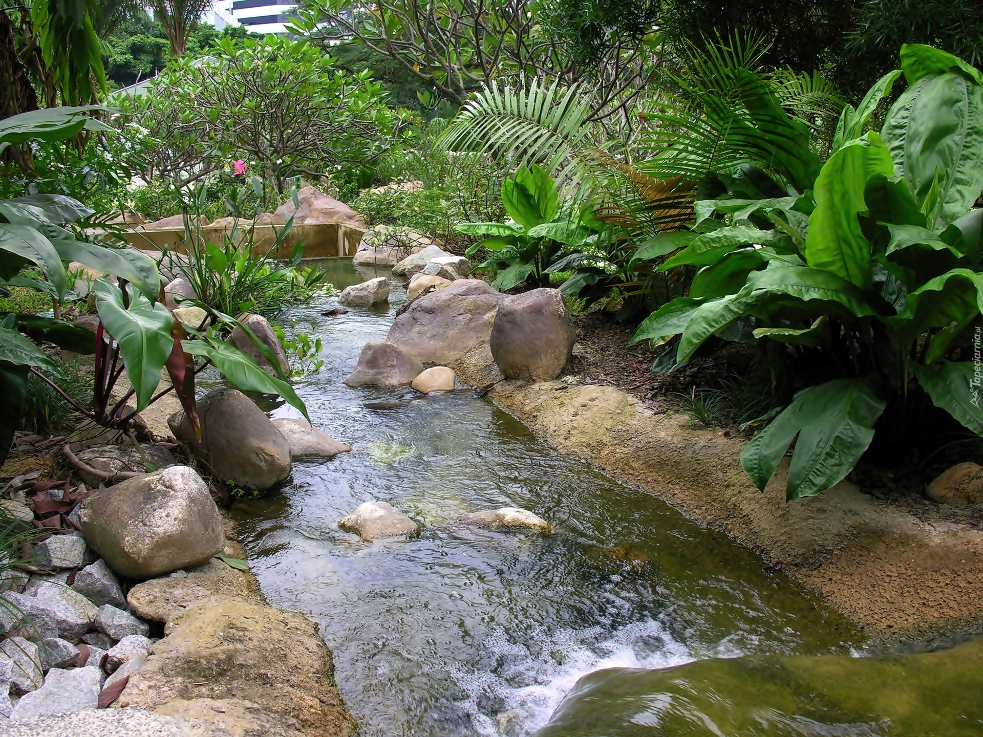 Edytor tapety: Ogród, Staw, Kaskada