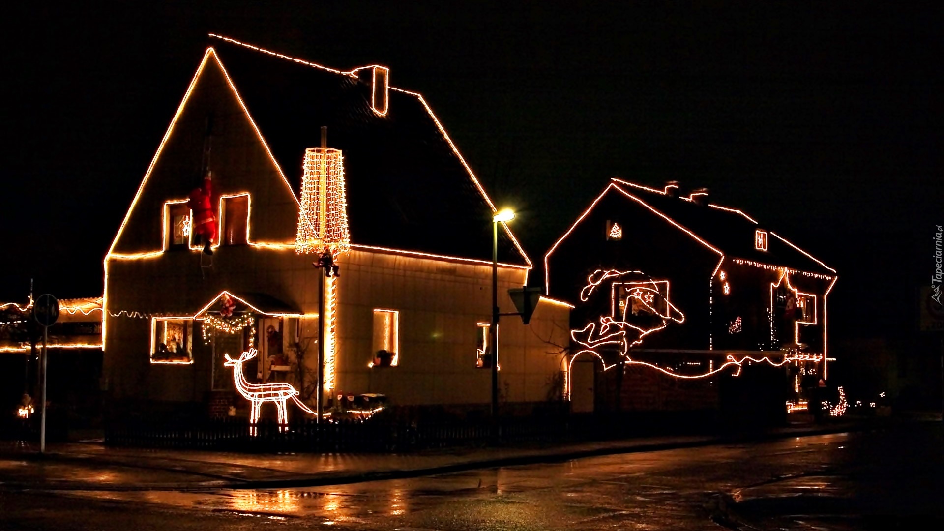 Edytor tapety: Domy, Światełka, Dekoracja, Świąteczna, Noc