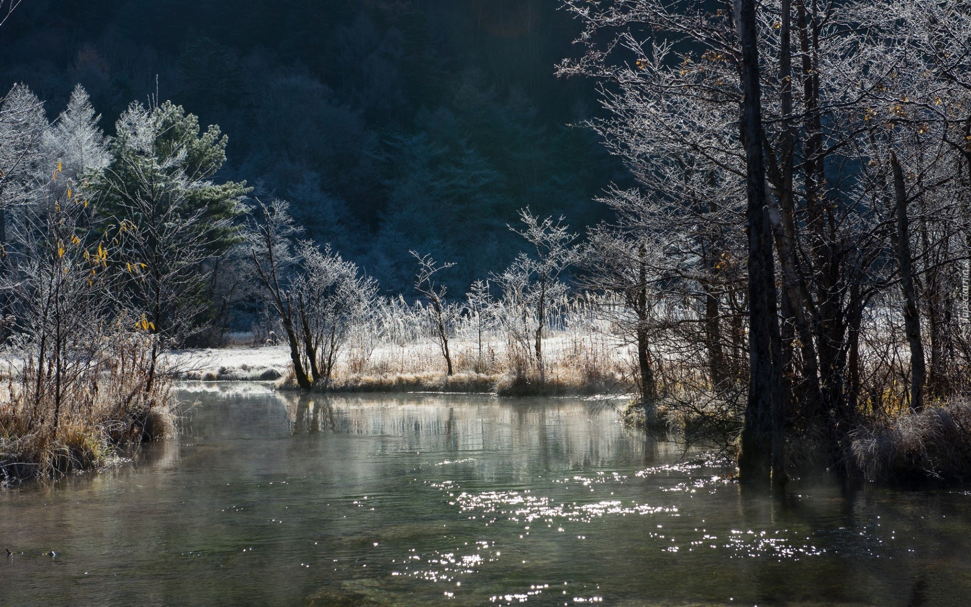 Edytor tapety: Rzeka, Góry, Lasy, Zima