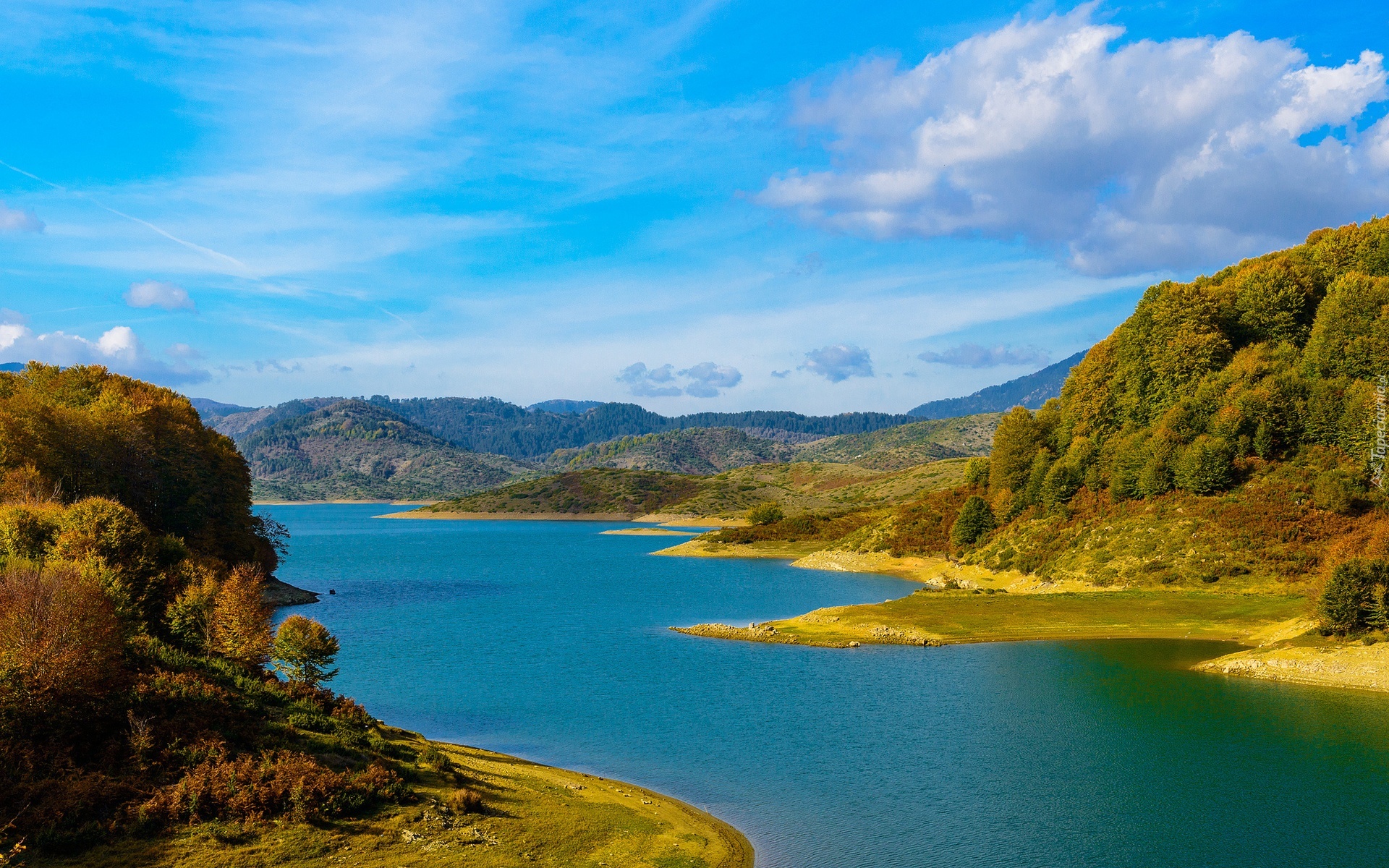 Edytor tapety: Jezioro, Góry, Lasy, Jesień
