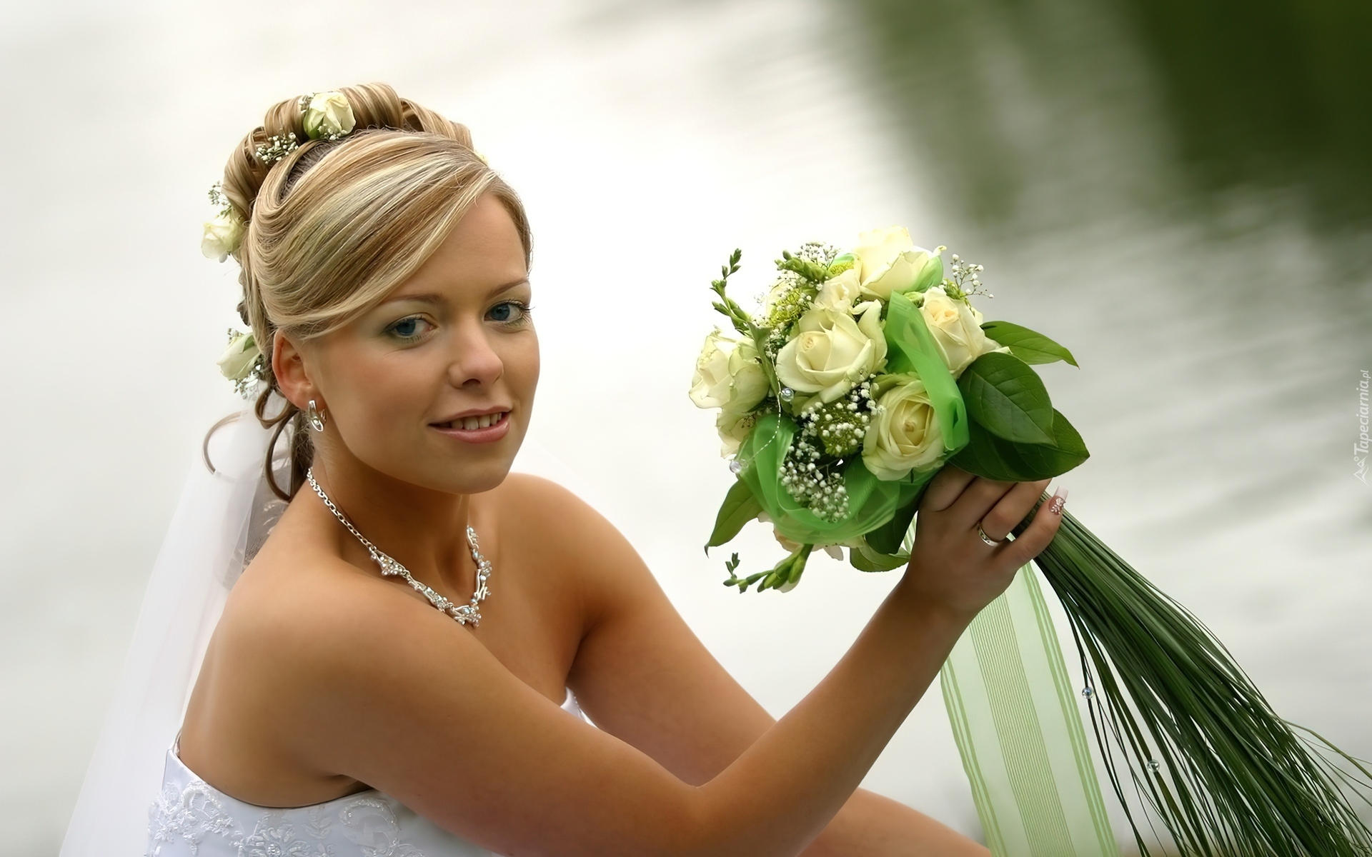 Edytor tapety: Panna, Młoda, Bukiet, Białych, Róż, Biżuteria