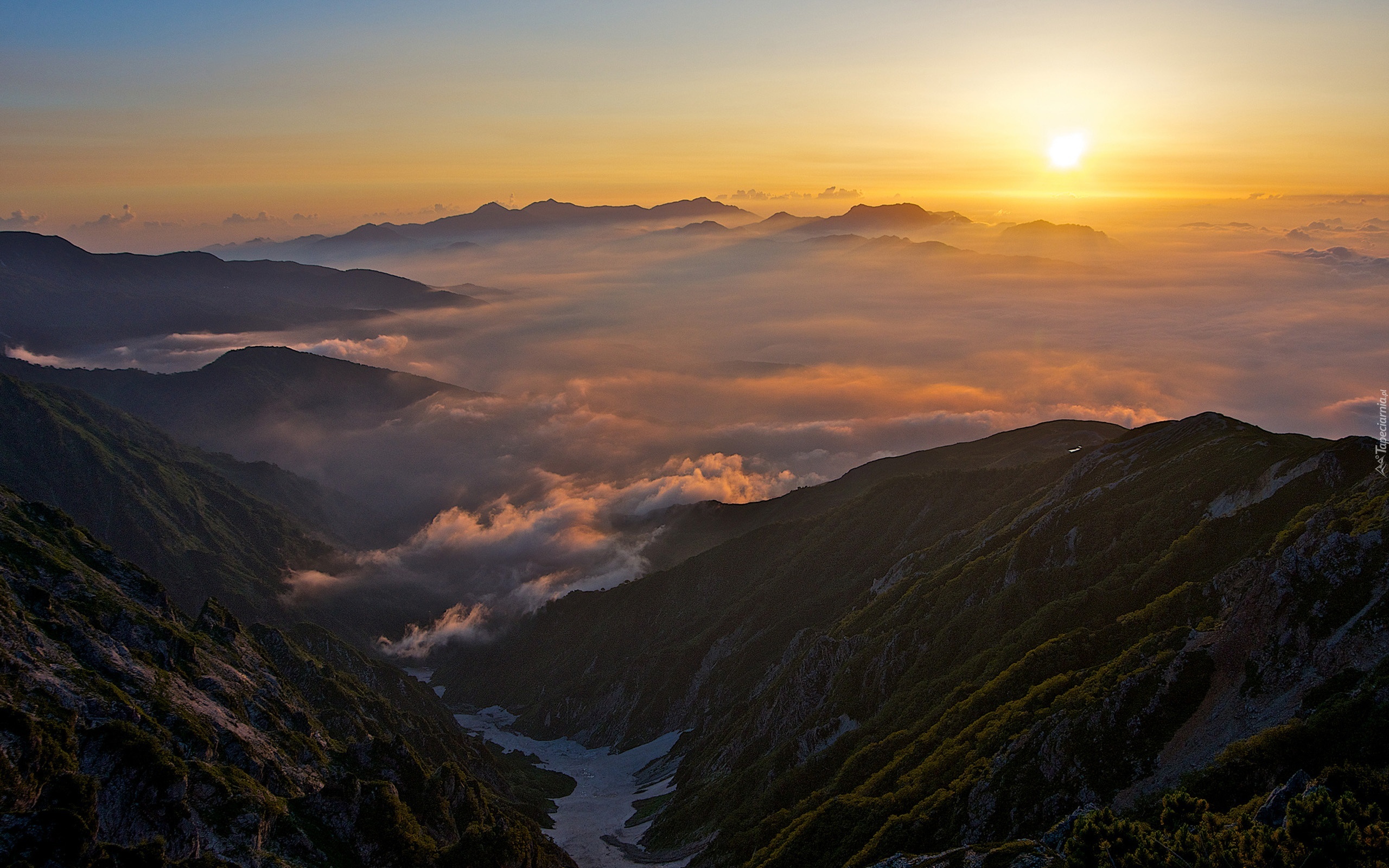 Edytor tapety: Góry, Zachód Słońca, Chmury