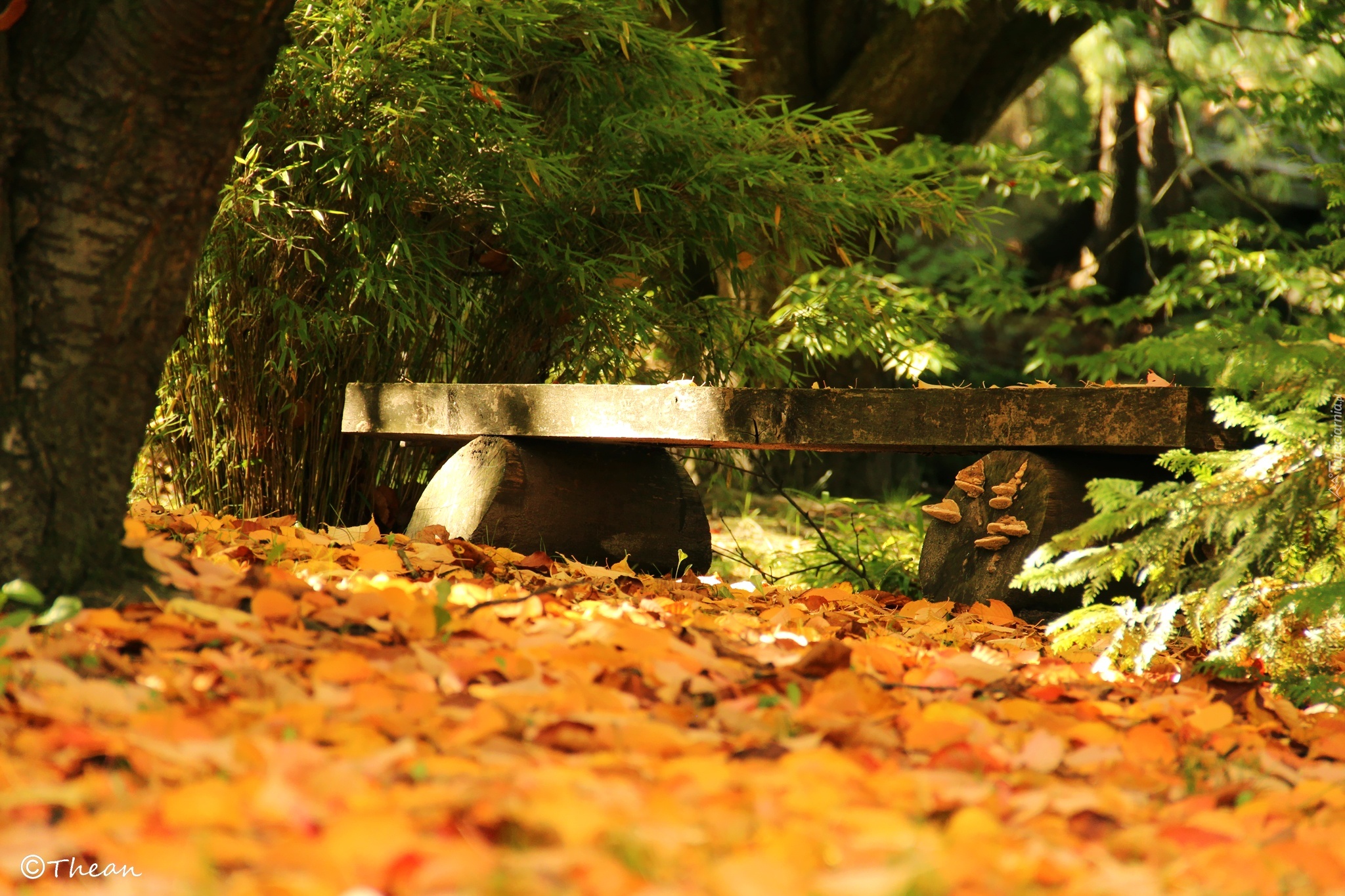 Edytor tapety: Ławeczka, Park, Jesień