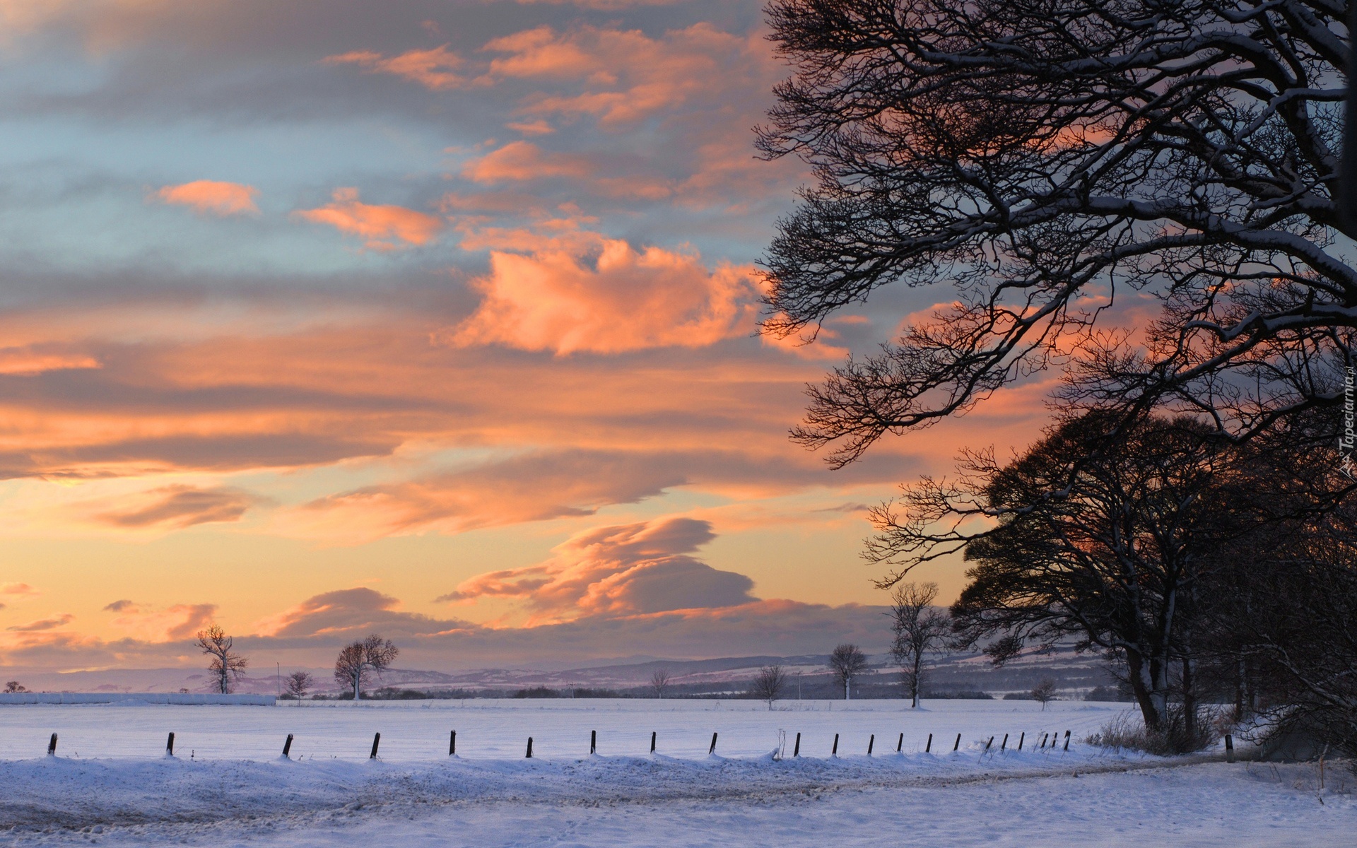Edytor tapety: Pola, Góry, Drzewa, Chmury, Zima