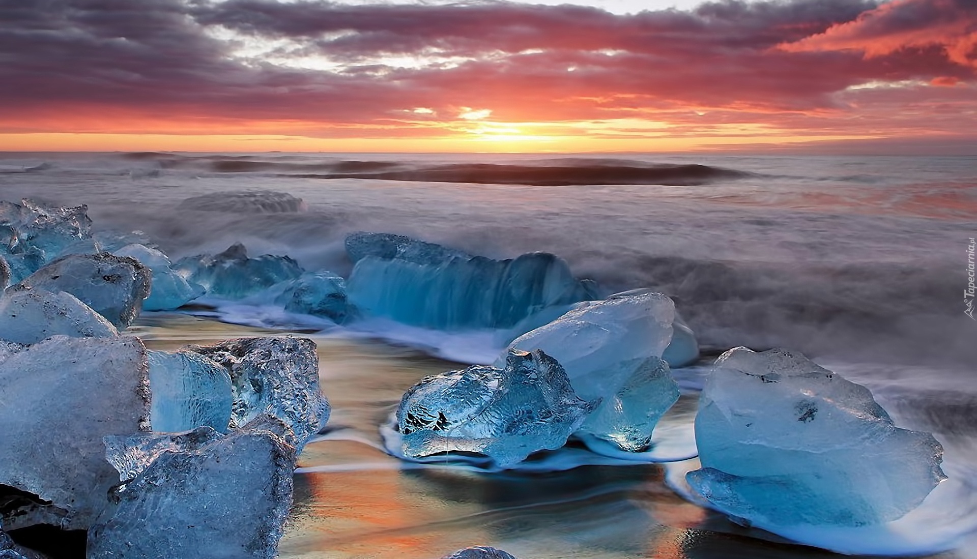 Edytor tapety: Plaża, Bryły, Lodu, Zachód, Słońća