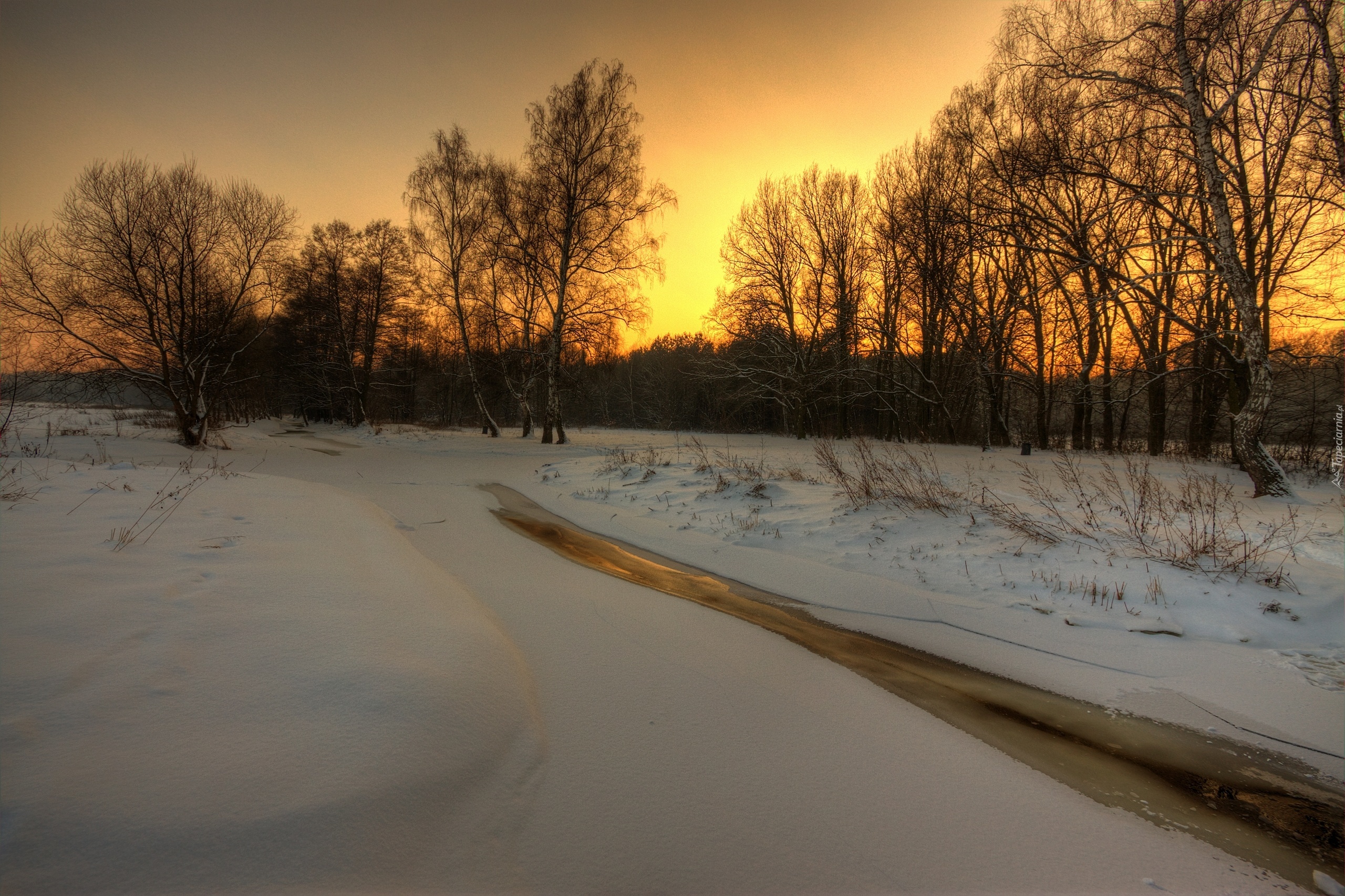 Edytor tapety: Drzewa, Potok, Zachód, Słońca