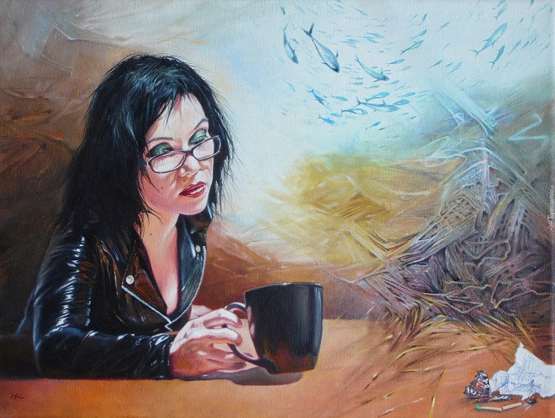 Edytor tapety: Włodzimierz Kukliński, Kobieta, Brunetka, Kubek