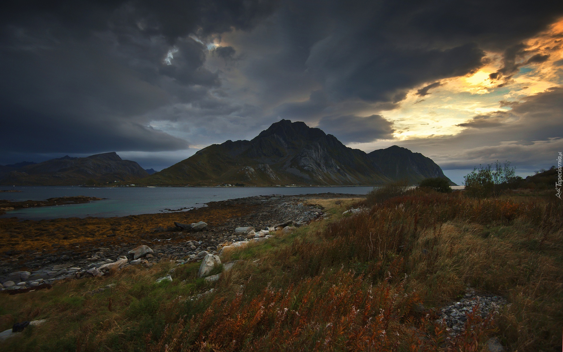 Edytor tapety: Góry, Rzeka, Łąka, Chmury
