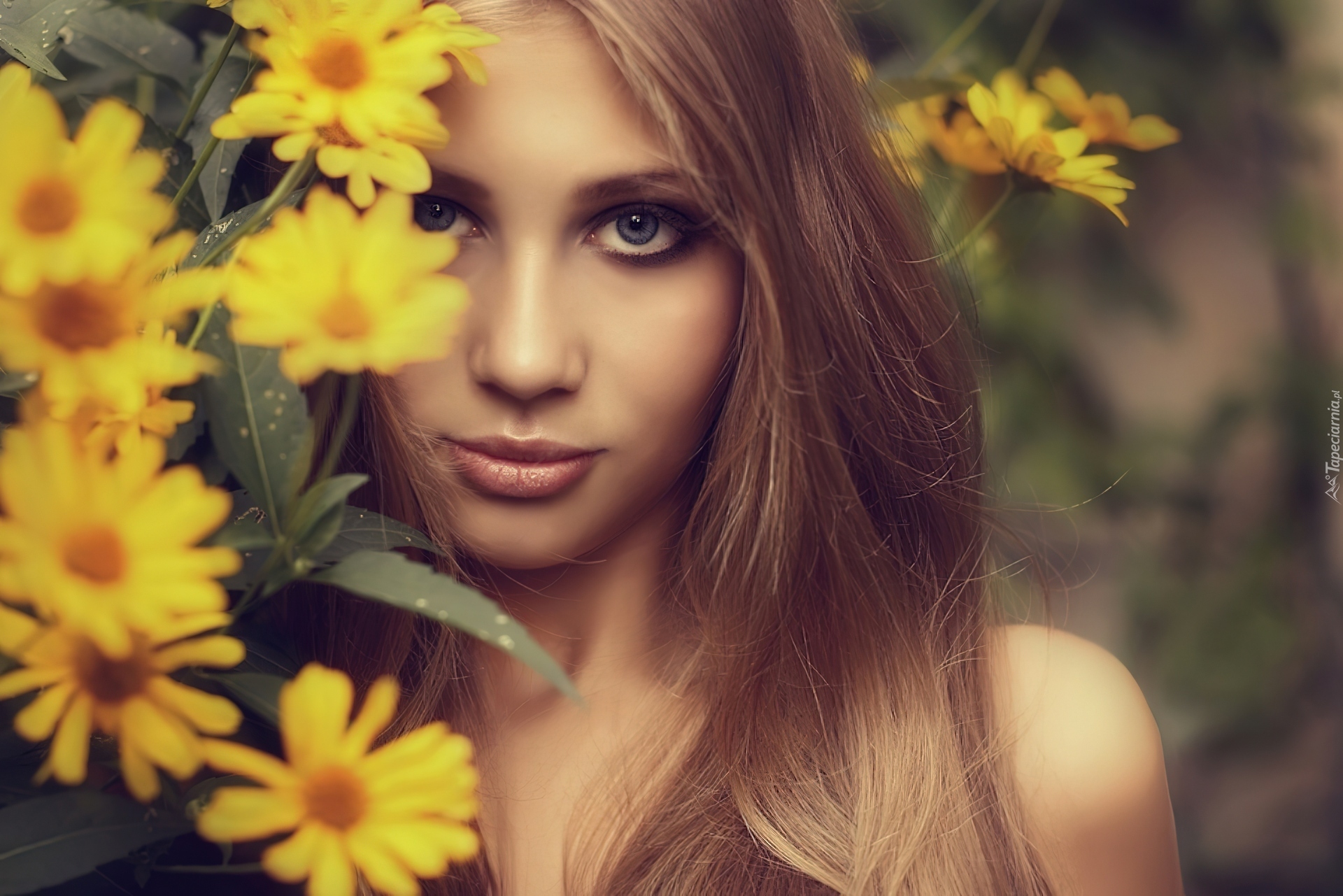 Edytor tapety: Żółte, Kwiaty, Twarz, Oczy