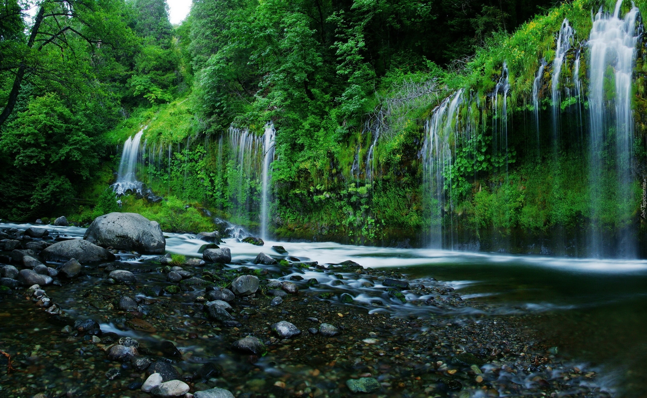 Edytor tapety: Wodospad, Zieleń, Kamienie