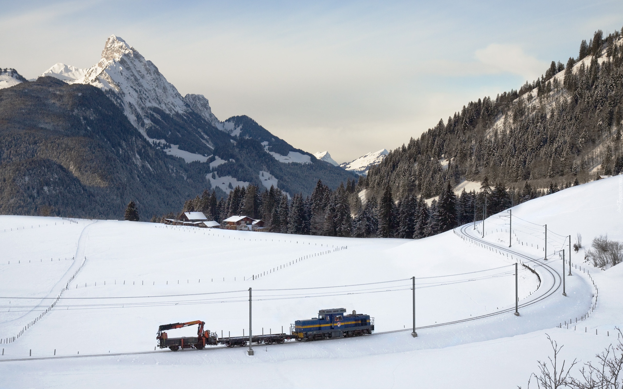 Edytor tapety: Góry, Lasy, Osada, Pociąg, Zima