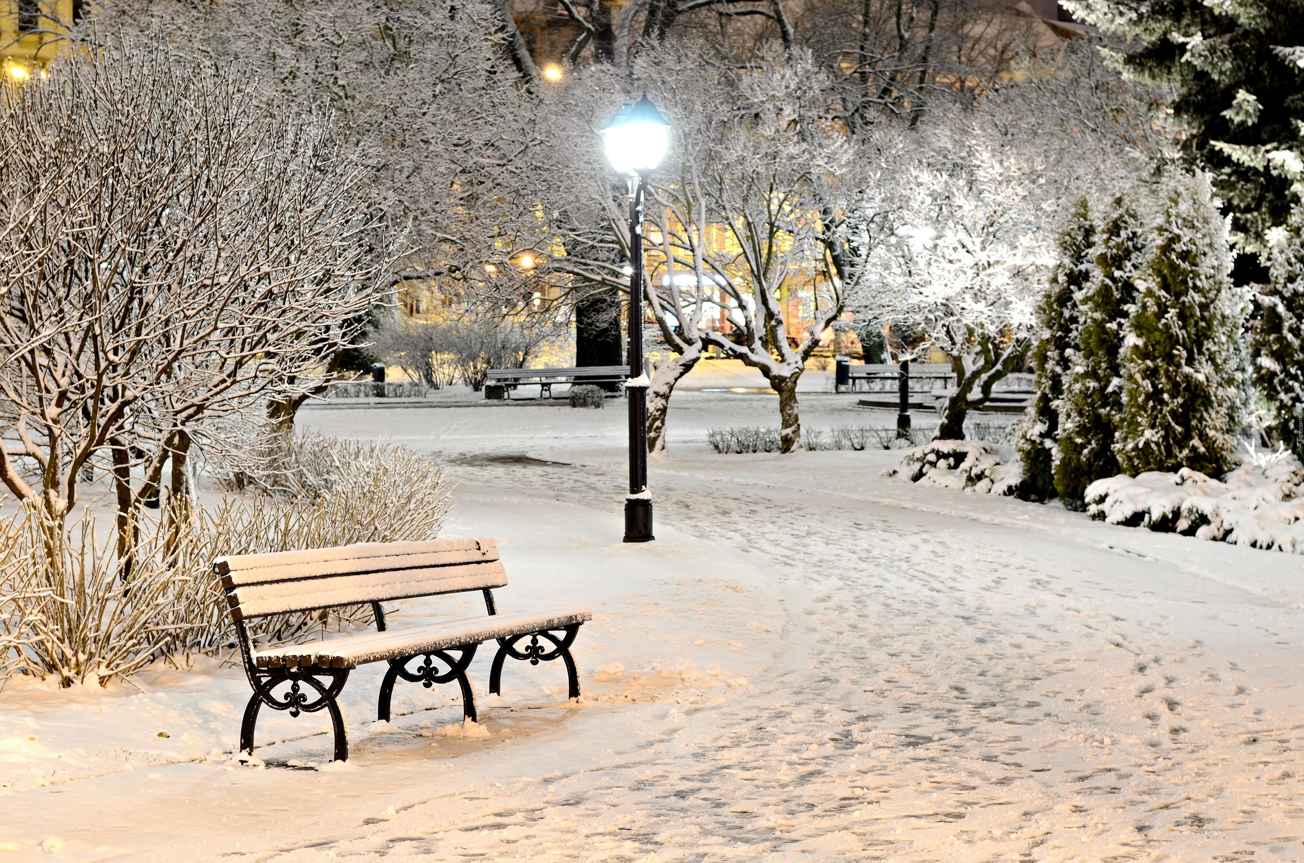 Edytor tapety: Park, Alejki, Latarnie, Ławki, Zima