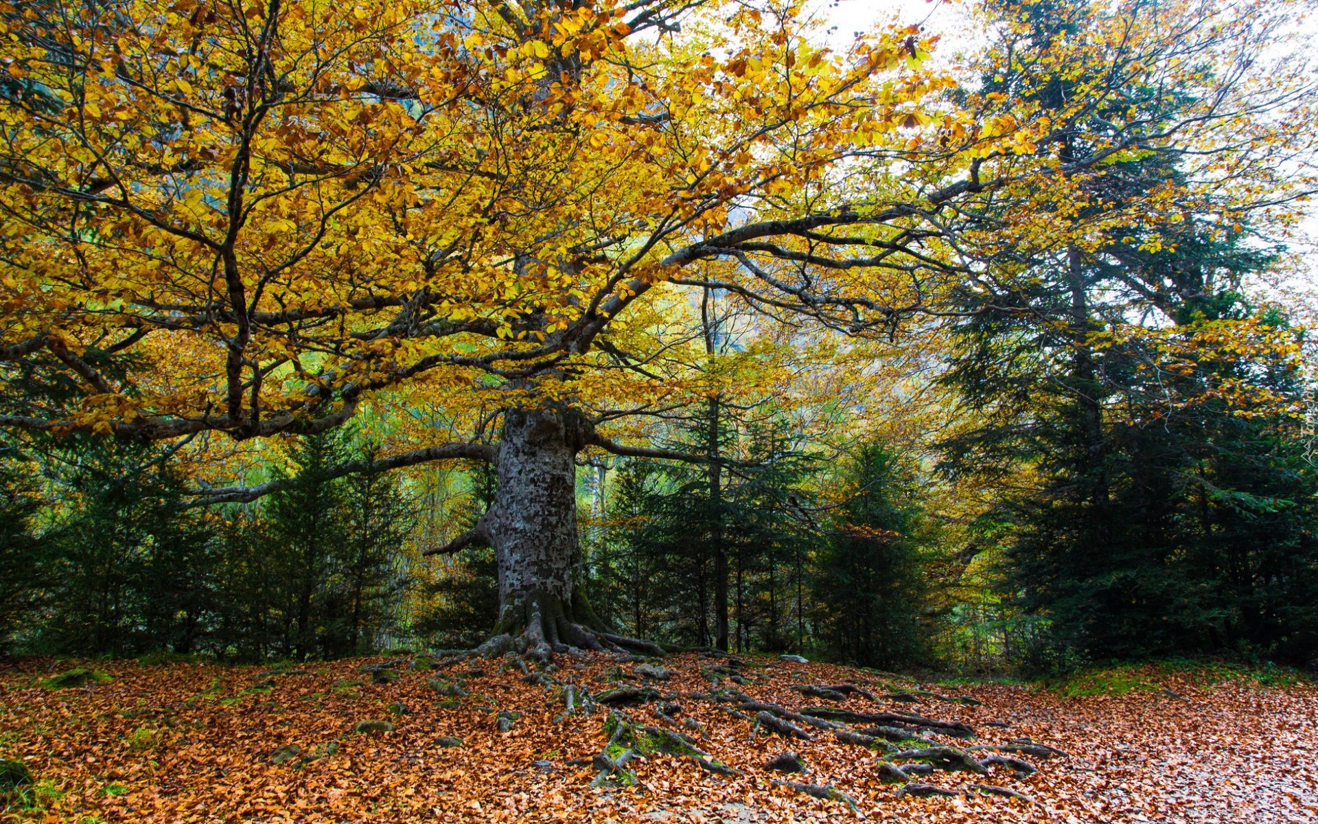 Edytor tapety: Las, Kolorowe, Drzewa, Liście, Jesień