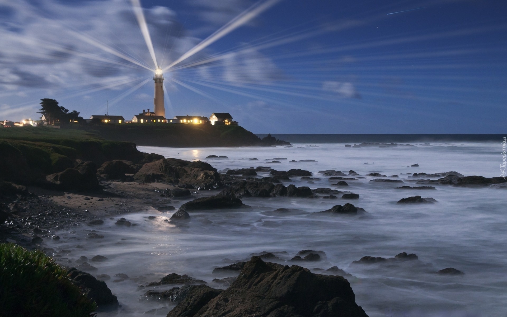 Edytor tapety: Latarnia, Morska, Wybrzeże, Skały, Noc