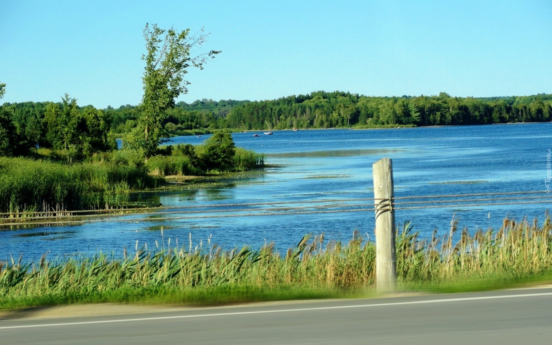 Edytor tapety: Jezioro, Łodzie, Lasy, Droga