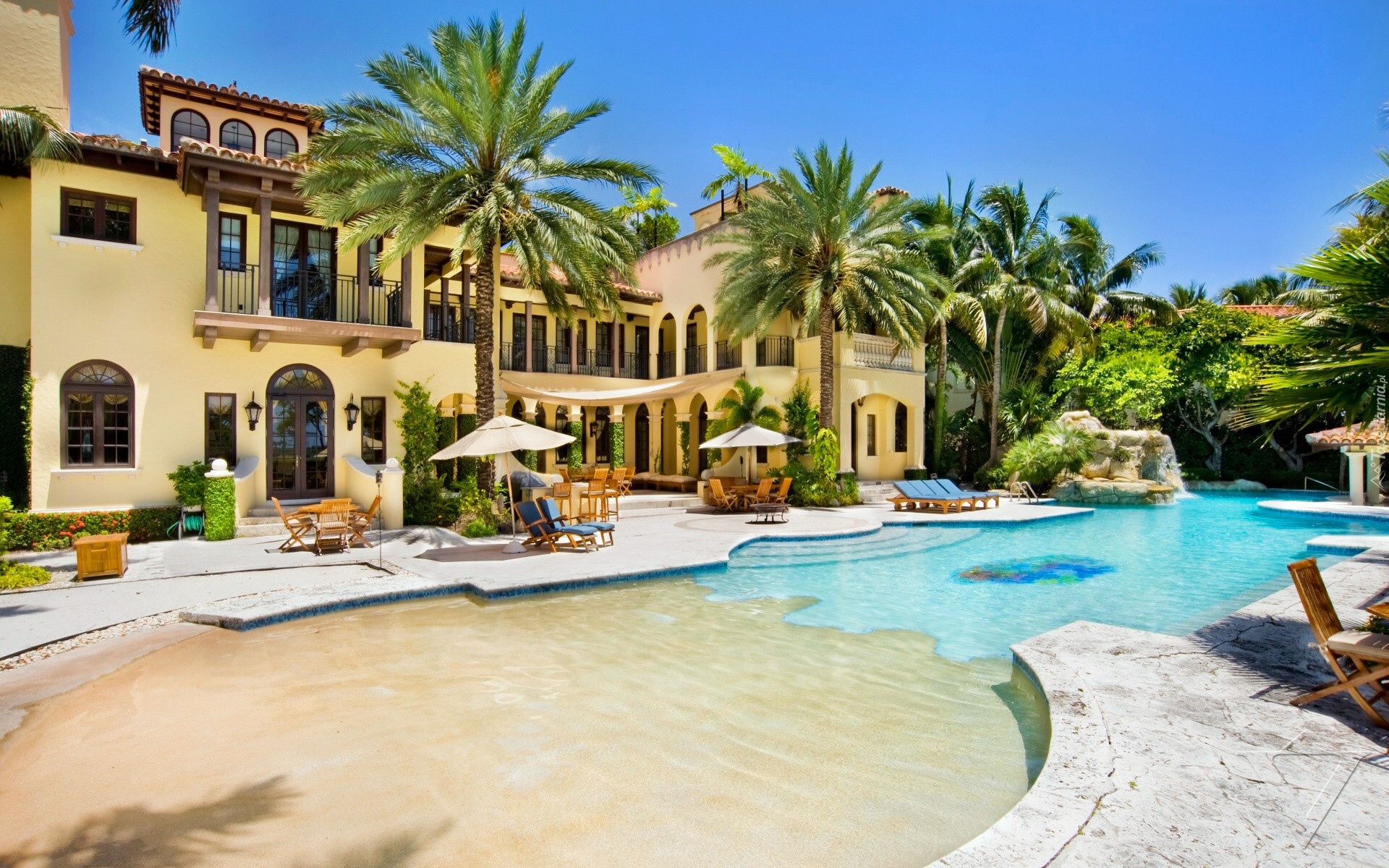 Edytor tapety: Dom, Willa, Ogród, Basen