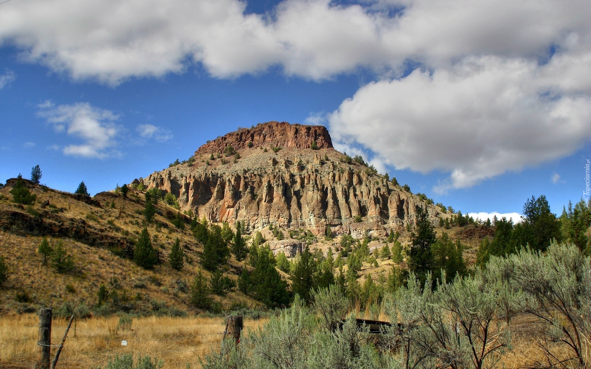 Edytor tapety: Wzgórza, Skały, Roślinność, Obłoki