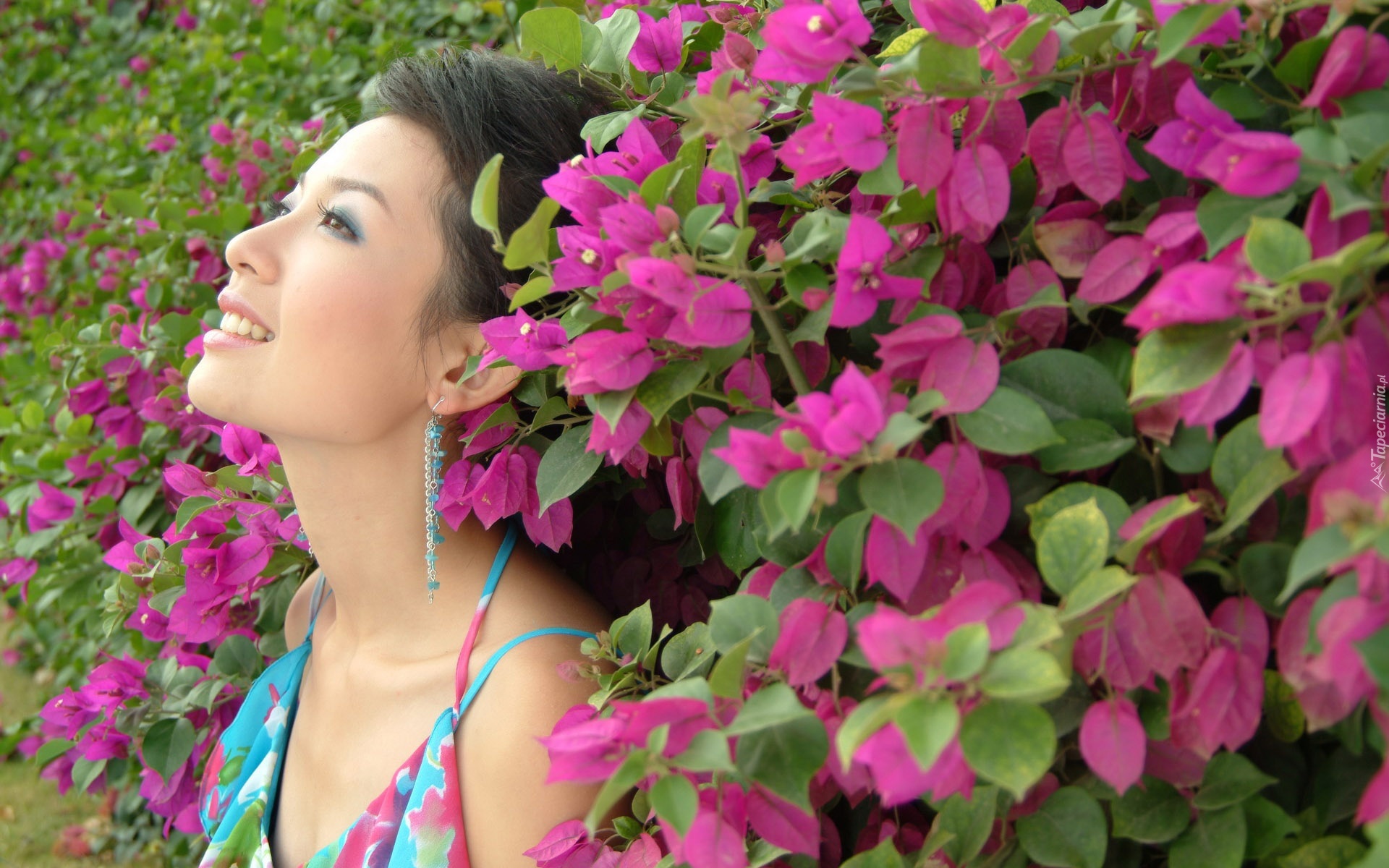 Edytor tapety: Romantyczna, Dziewczyna, Park, Krzewy, Kolorowe, Liście