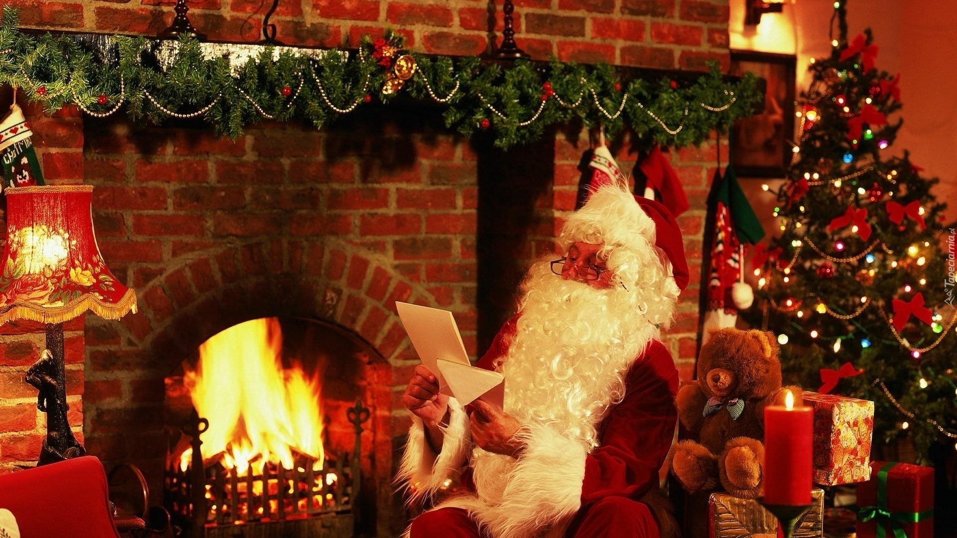 Edytor tapety: Pokój, Mikołaj, Kominek, Choinka