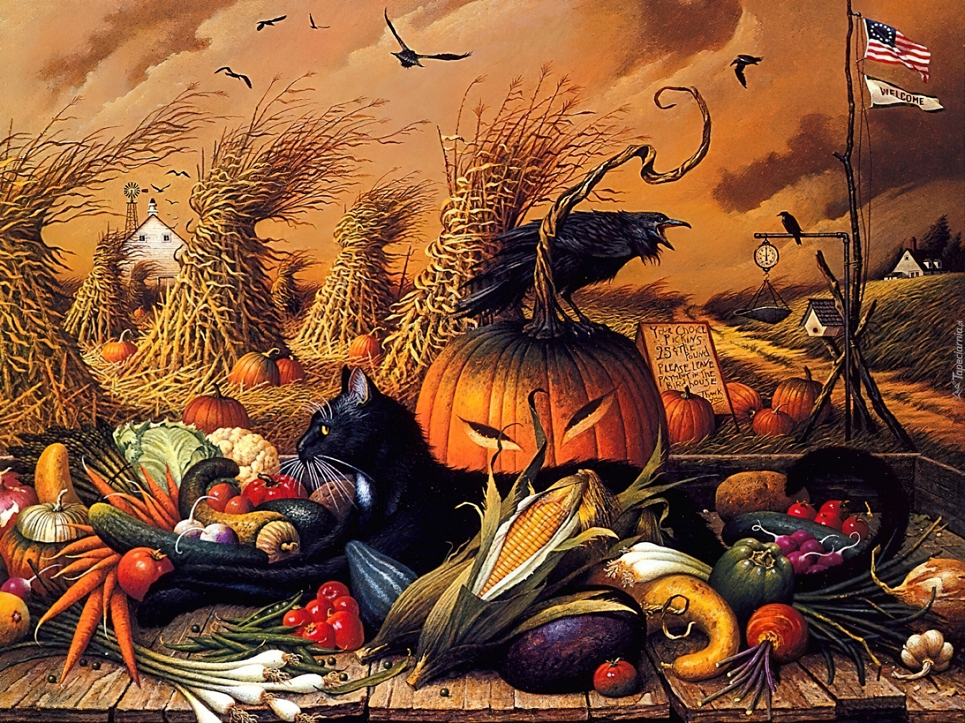 Edytor tapety: Halloween,kotek, USA , warzywa