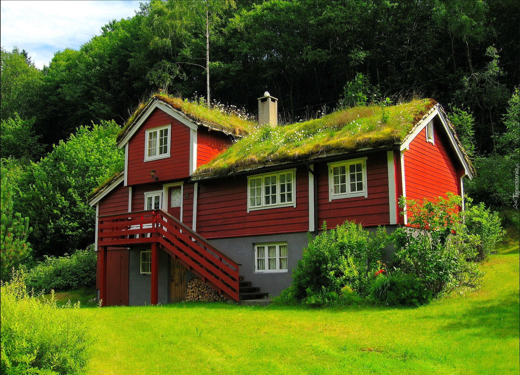 Edytor tapety: Domek, W Lesie, Przebijające, Światło