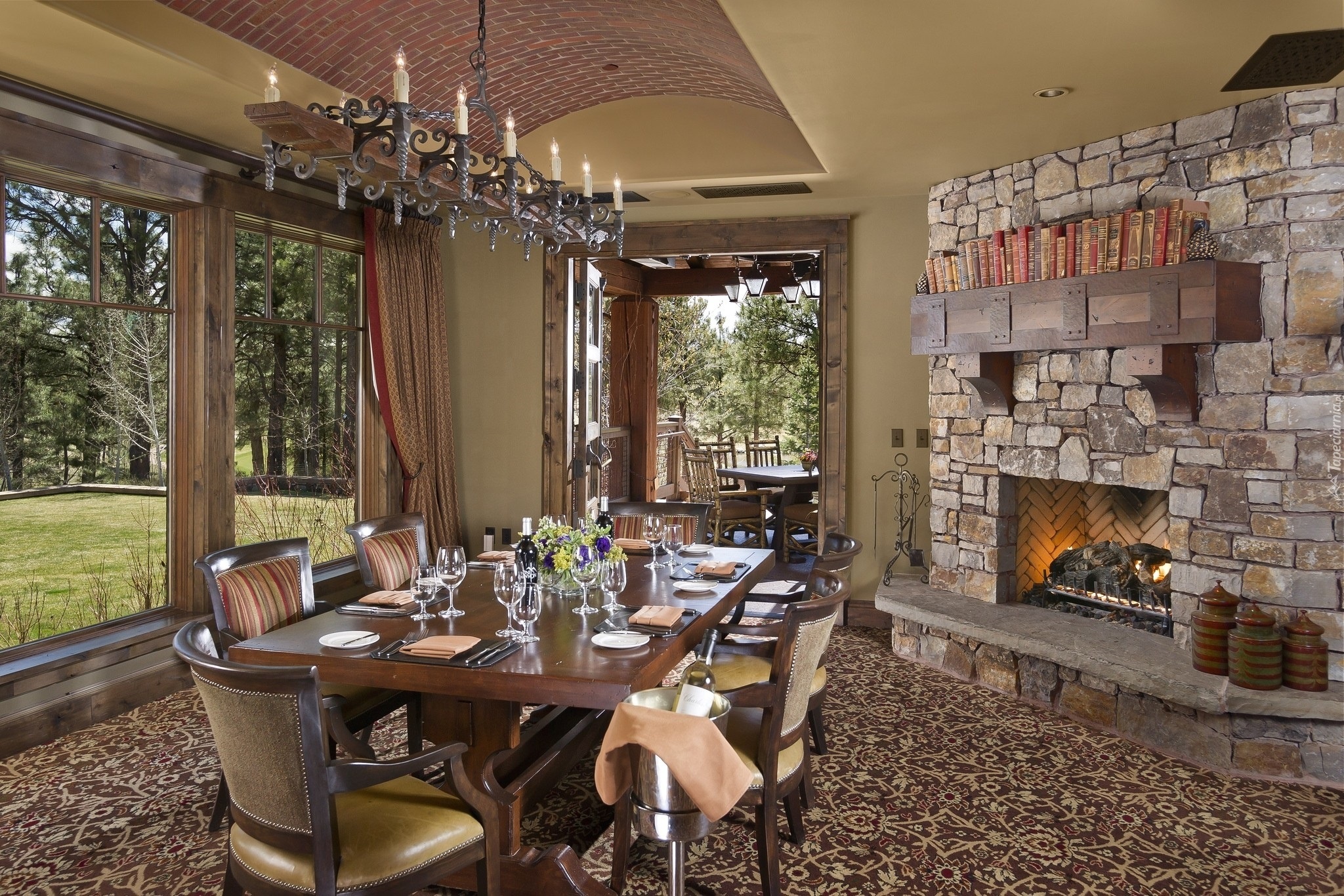 Edytor tapety: Dom, Jadalnia, Okno, Widok, Ogród