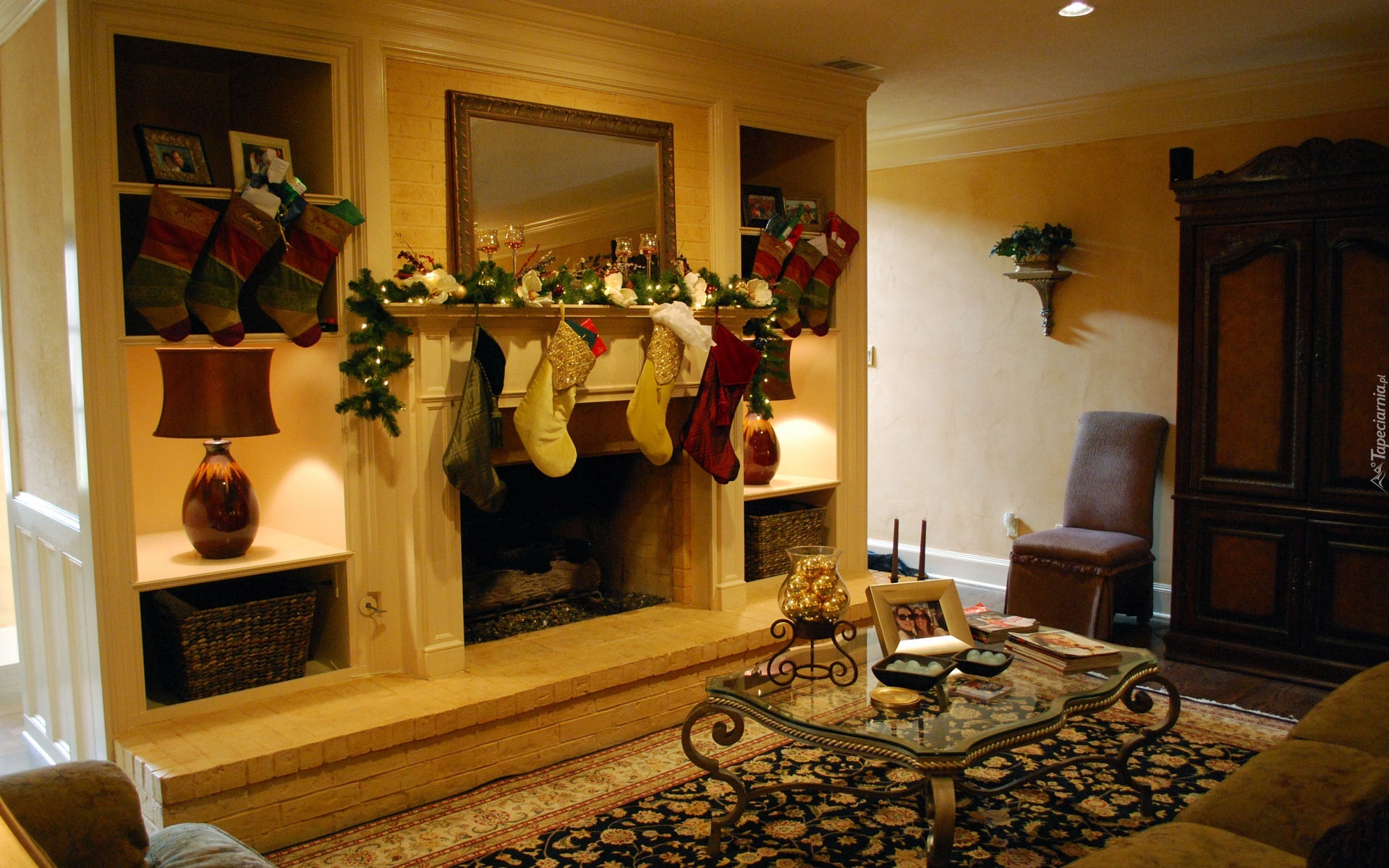 Edytor tapety: Pokój, Kominek, Skarpety