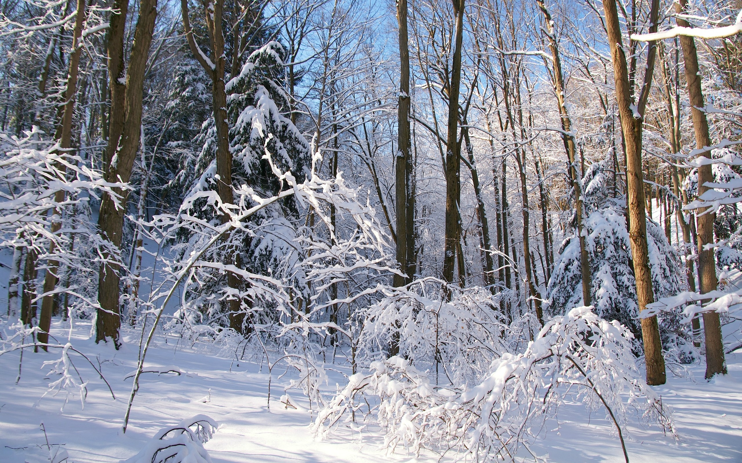 Edytor tapety: Las, Ośnieżone, Drzewa, Zima