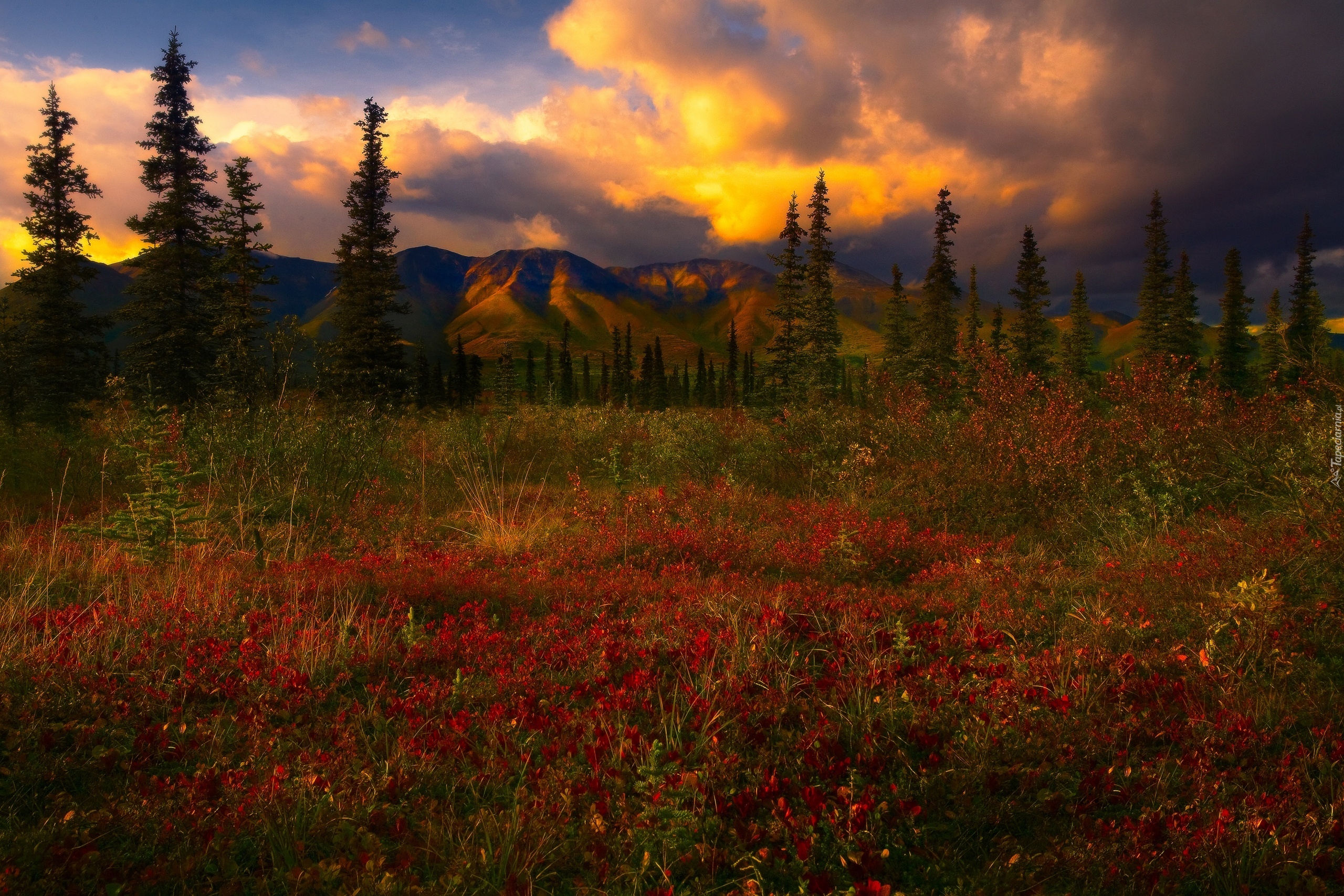 Edytor tapety: Góry, Łąki, Zachód, Słońca